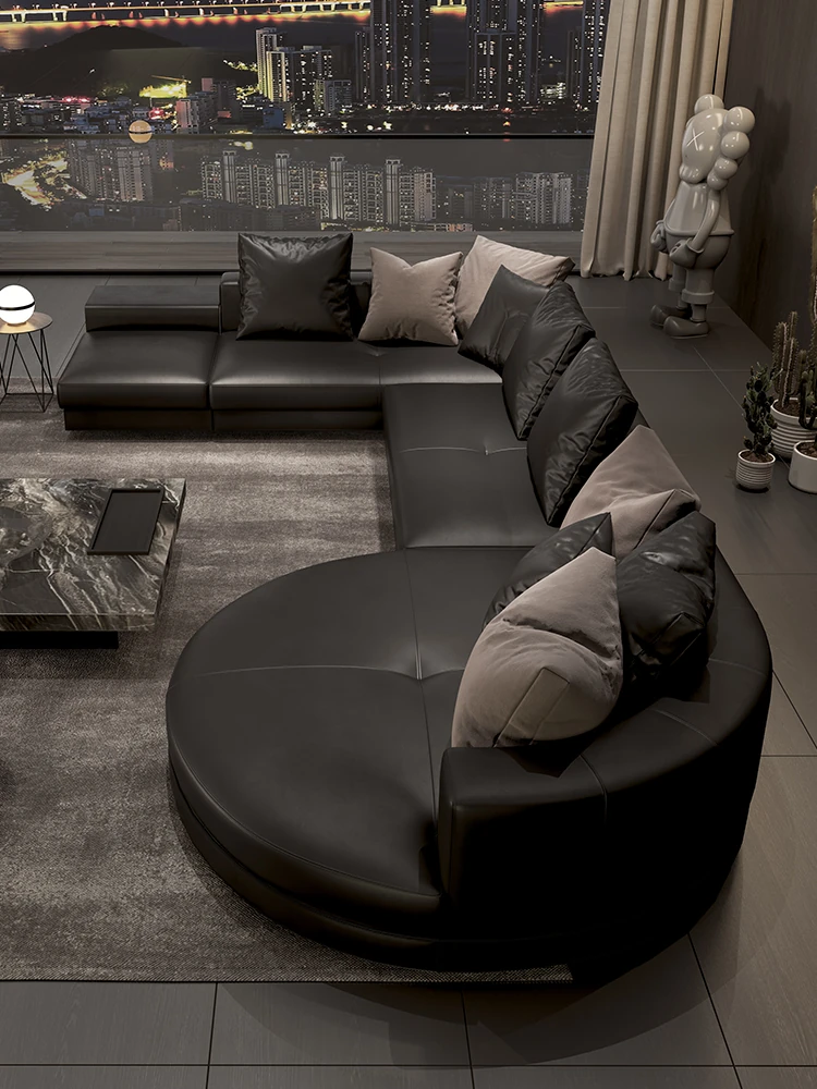 北欧スタイルのユニークなコーナーヴィラ・ラージサイズ・全真皮ソファー・モダンミニマリズム・イタリアンホテル・美容院の受け付けに最適!洗練されたデザインで、上質な時間を提供します。
