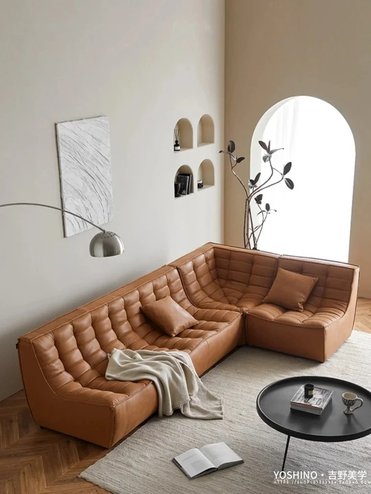 本革ソファー|2025年新作|モダンミニマリストデザイン|小型リビングに最適|贅沢感溢れるレザーソファーコンビネーション|快適さとスタイルを両立!