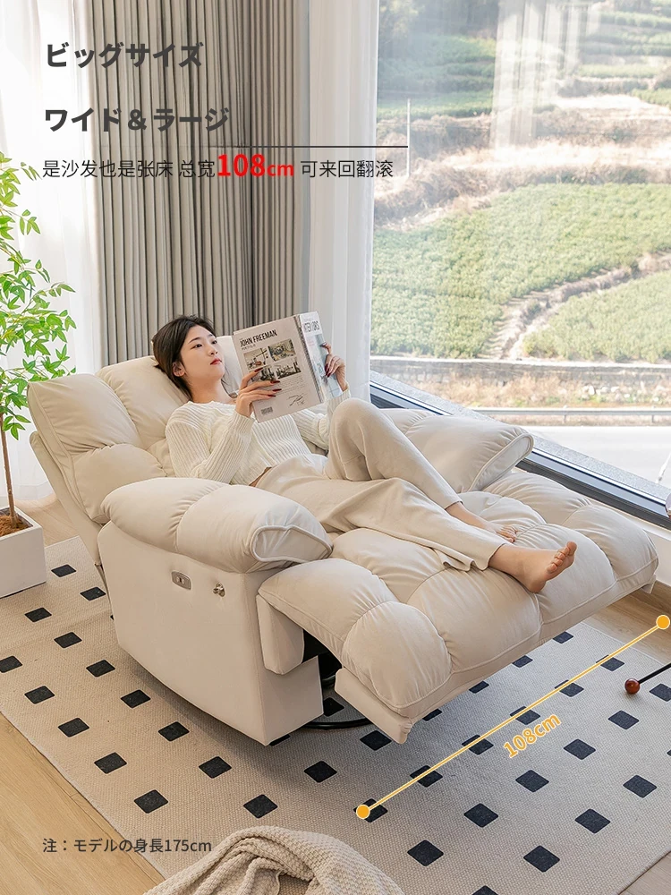 エレガントなデザインの多機能雲のようなラウンジソファ、リクライニング&ベッド機能付き!家庭のリビングにぴったりの電動一人用ソファチェア。快適さとスタイルを両立させた、あなたのくつろぎ空間を演出します。