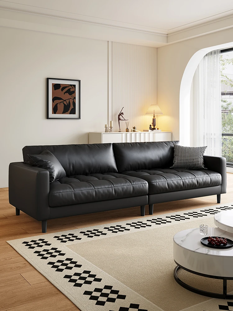 シンプルでモダンなテクニカルファブリックソファ - 小型リビング向け、直線デザインの家庭用軽奢スタイル、2025年新作、リアルレザーの3人掛けソファで、快適さとスタイルを両立!