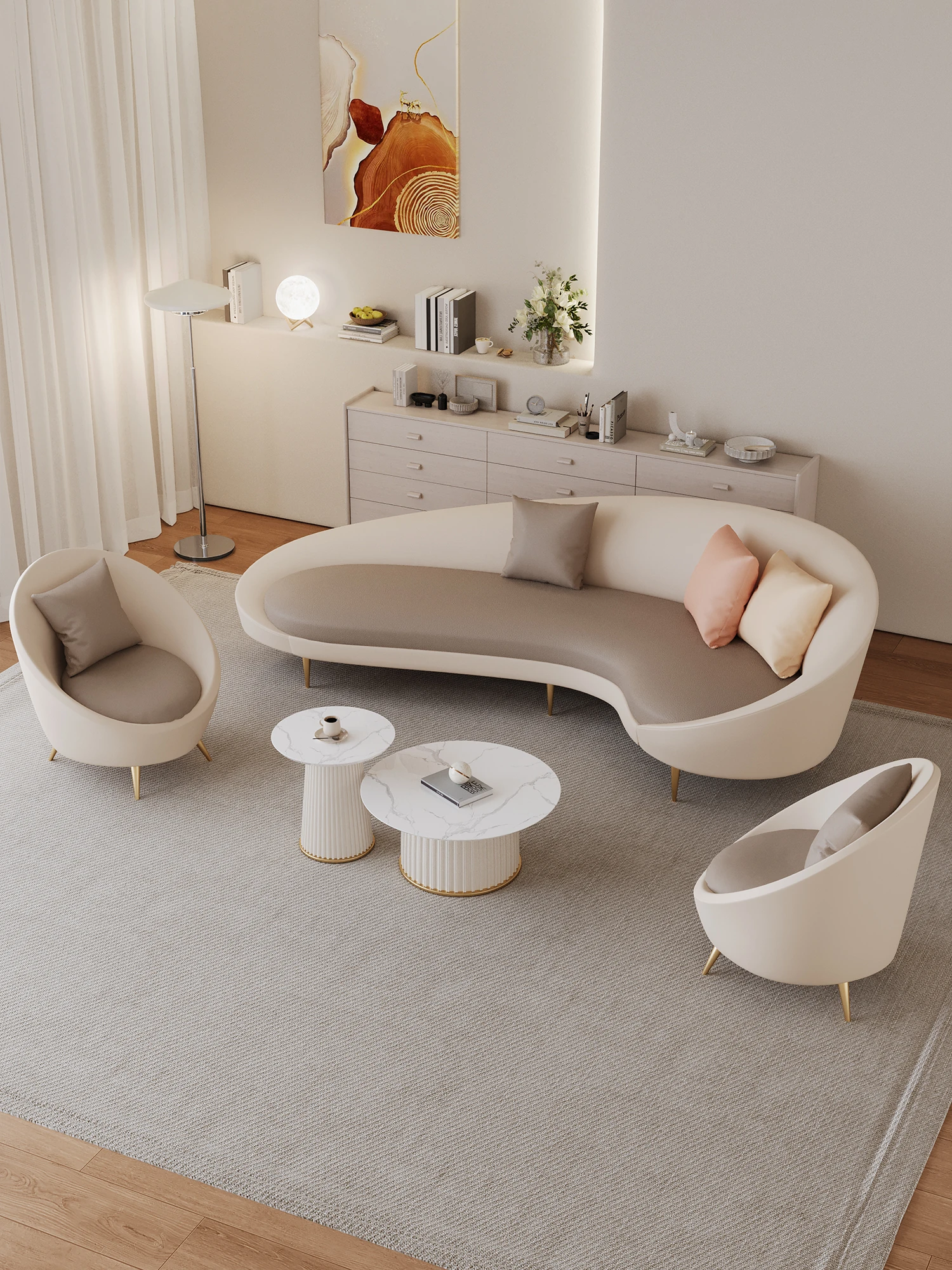 エレガントな軽奢ソファ|オフィス接待・休憩エリアに最適|ビジネスミーティングや美容院にもぴったりなシンプルでモダンなアーチ型デザイン|話題のスタイルを取り入れたおしゃれなアイテムです!