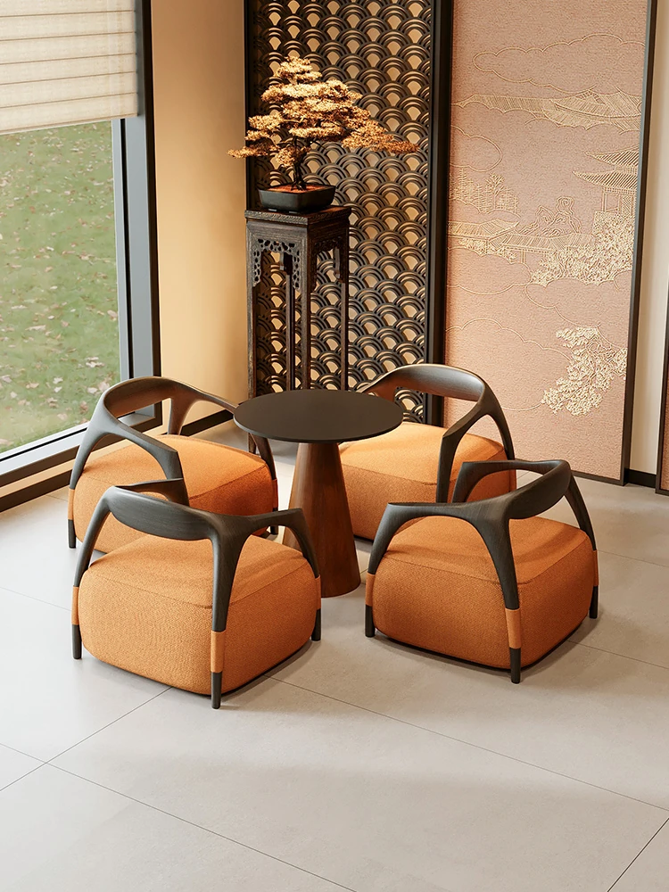 新中式デザインの商談テーブル&チェアセット|不動産販売所・ホテルロビー・美容院・茶室に最適!一卓四椅子で、優雅な接待スペースを演出します。おしゃれで快適な空間を実現!