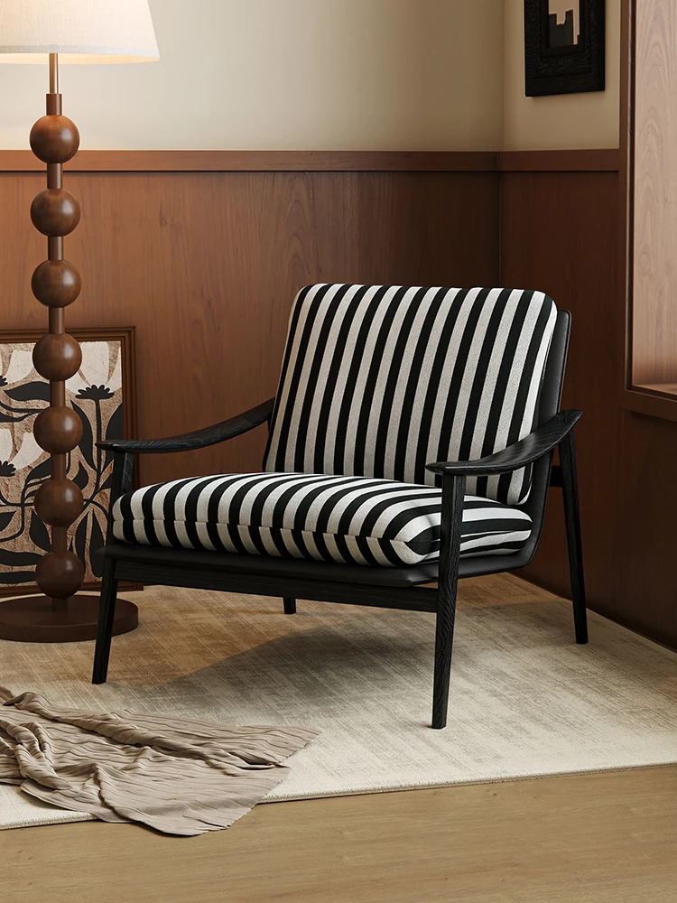 ヴィンテージ風のシングル軽奢ソファチェア|無垢材フレンチレトロモダンデザイン|おしゃれなリビングやバルコニーに最適なリラックスチェア