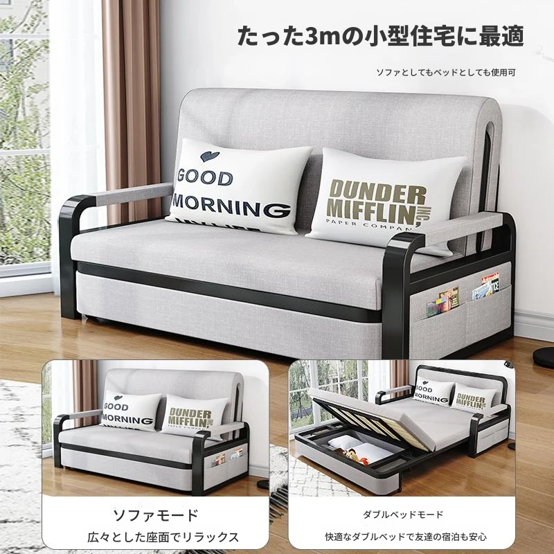 【香港送料無料】おしゃれな二重機能ソファベッド!小型リビングに最適、折りたたみ式で多用途&伸縮自在、洗えるカバー付きでお手入れ簡単!