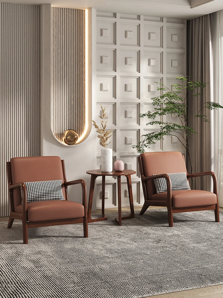 シンプルな人間工学デザインの侘寂風アームチェア|クリエイティブなホテルやビジネスラウンジに最適|リラックスできる会議や談話のためのソファチェア