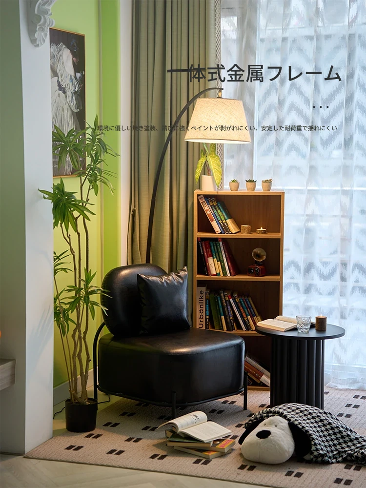高級感漂うレトロなブラックソファチェア - 小型住宅やホテルのロビーにぴったり!おしゃれなリビングやバルコニーに最適な一人掛け椅子で、心地よい休息空間を演出します。