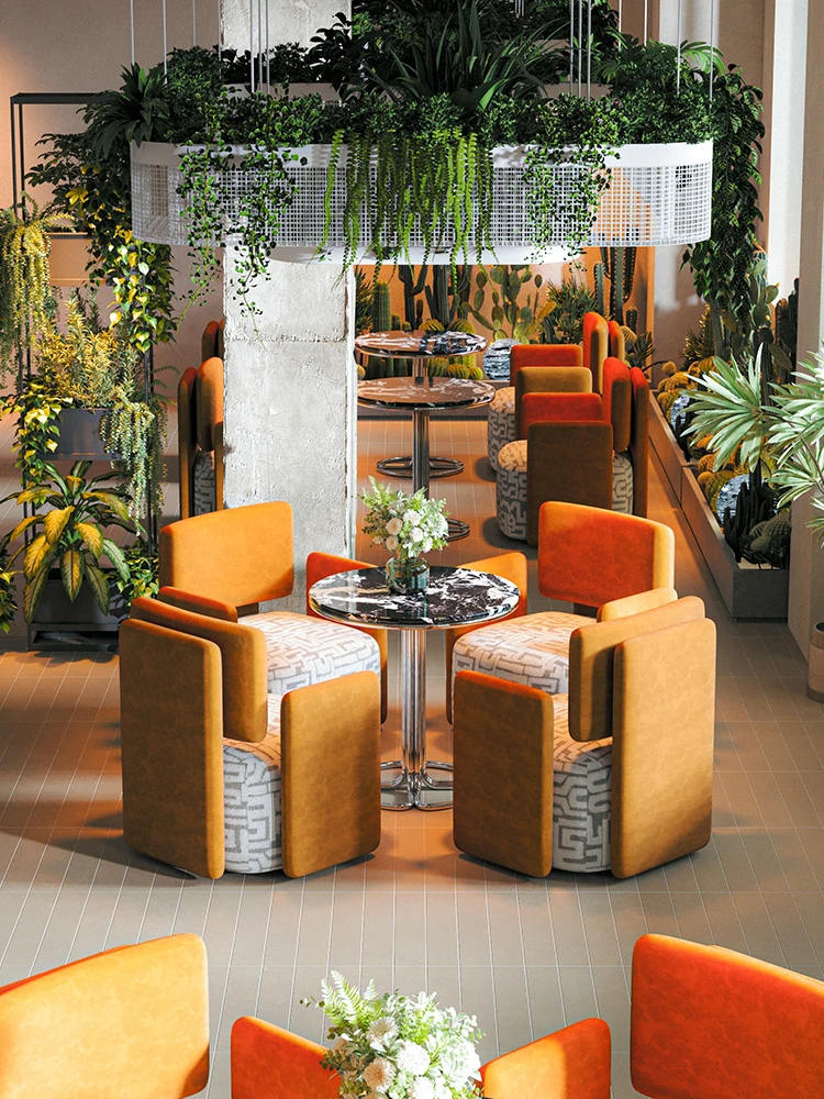 高級感溢れる洽談テーブル&チェアセット - ホテルマーケティングセンターに最適!エレガントなデザインでおしゃれな空間を演出し、接客を一層引き立てます。理想のサンプルルームにぴったりなソファチェア付き!