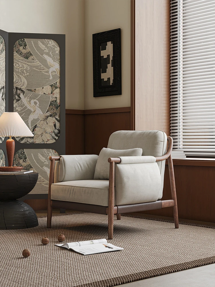 一人用侘寂風スタイルのモダンデザインソファ|デザイナーズサンプルルーム・ホテル・民宿の接客エリアにぴったりなイタリアンリラクシングチェア!おしゃれで落ち着く空間を演出します。