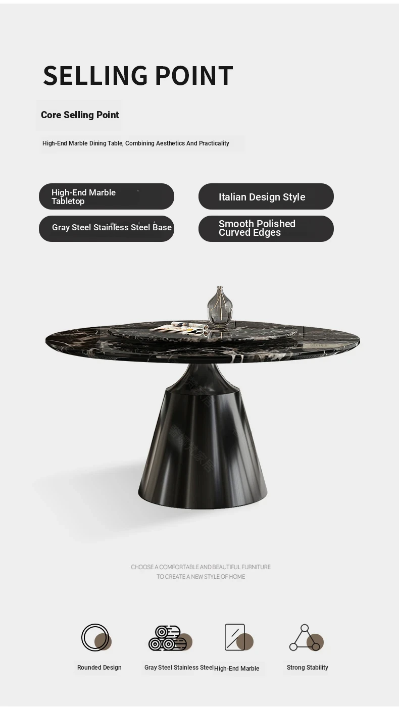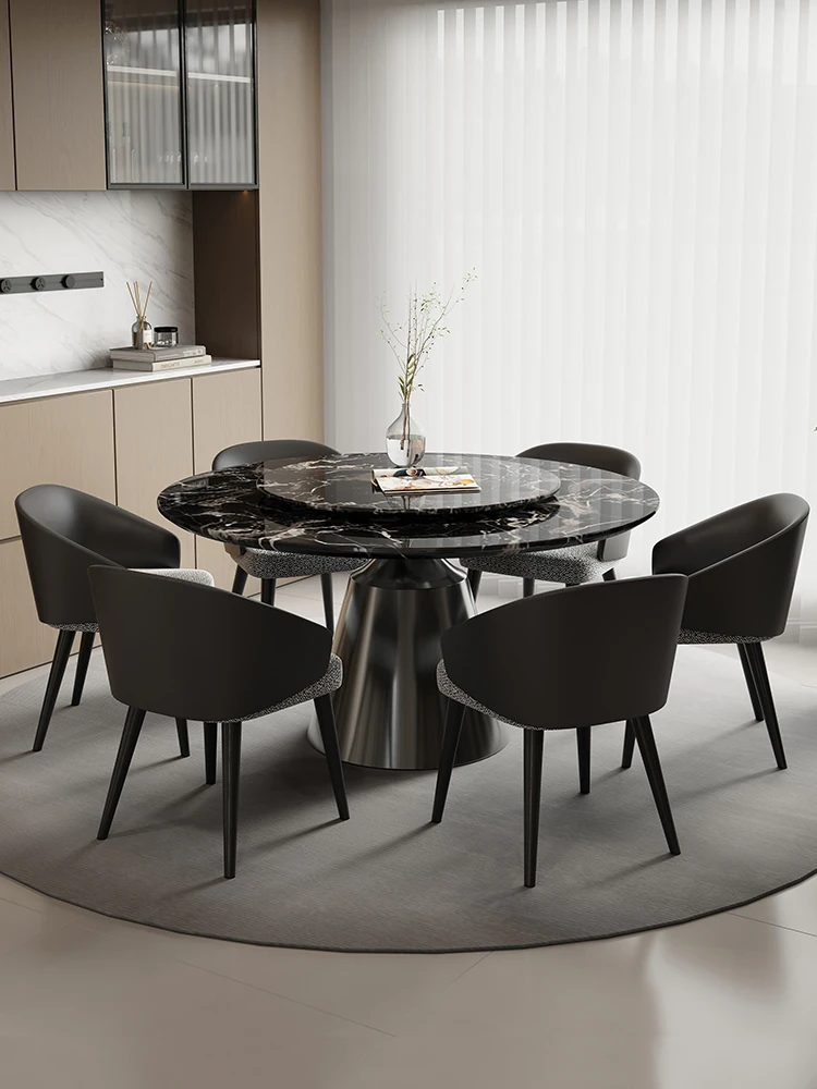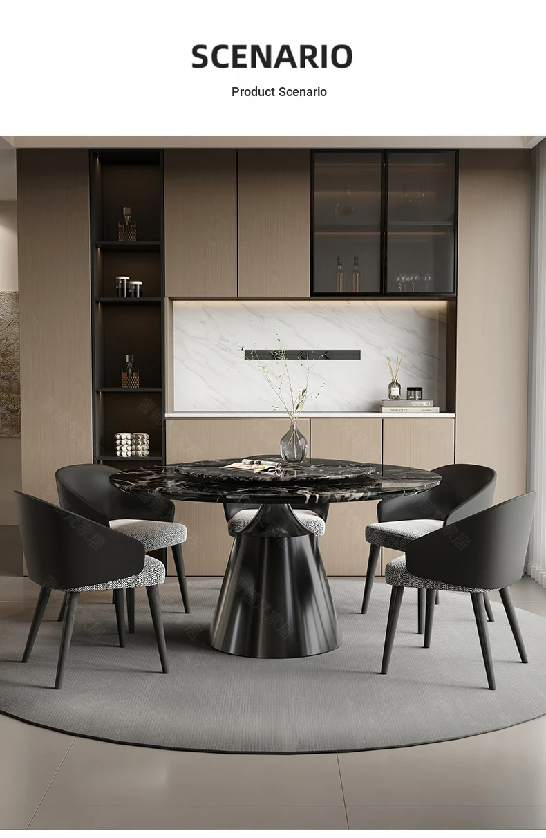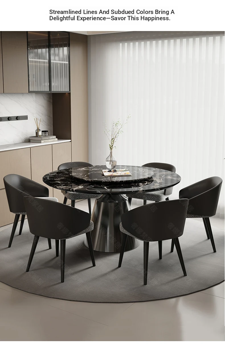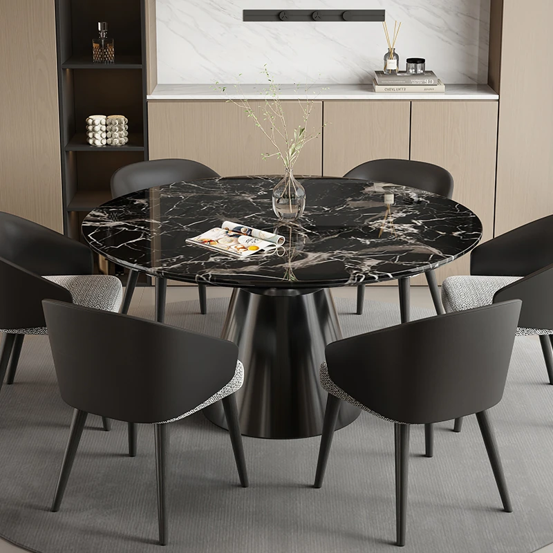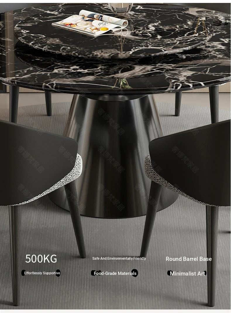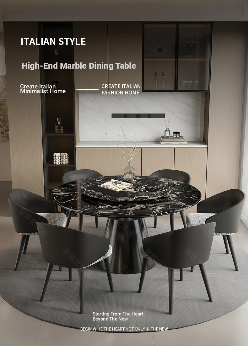 Black Rose Natural Marble Round Dining Table with Chairs – High-End Italian Luxury for Modern Homes, Perfect for Small Spaces – New Arrival 2024
