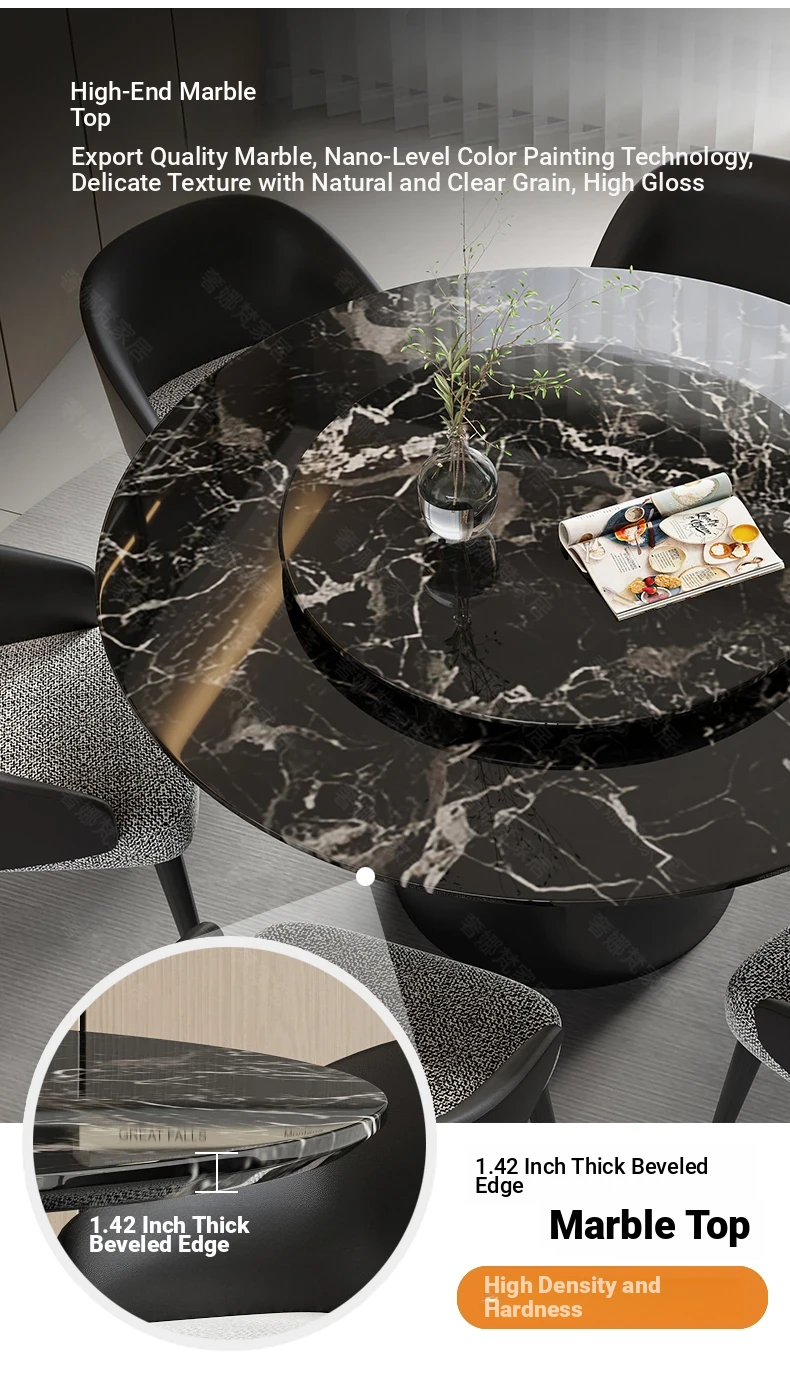 51.18 in natural marble dining table [with 27.56in turntable] 1.42in thickened edge