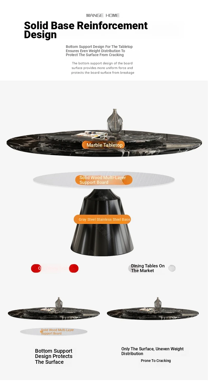 51.18 in natural marble dining table [without turntable] 1.42in thickened edge