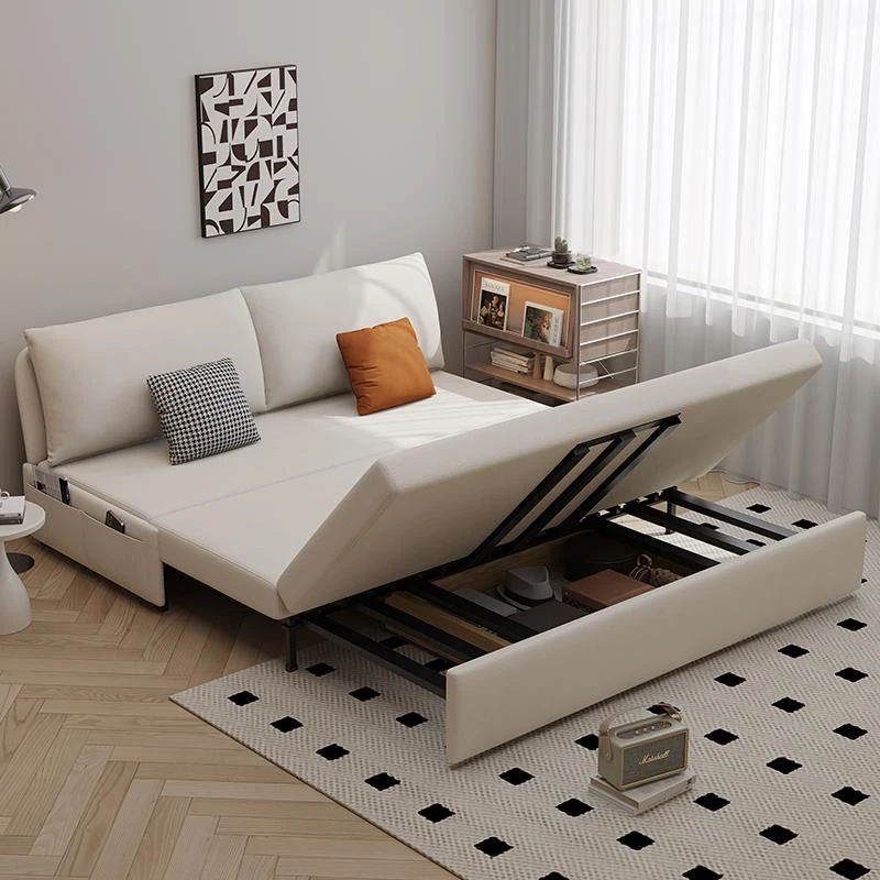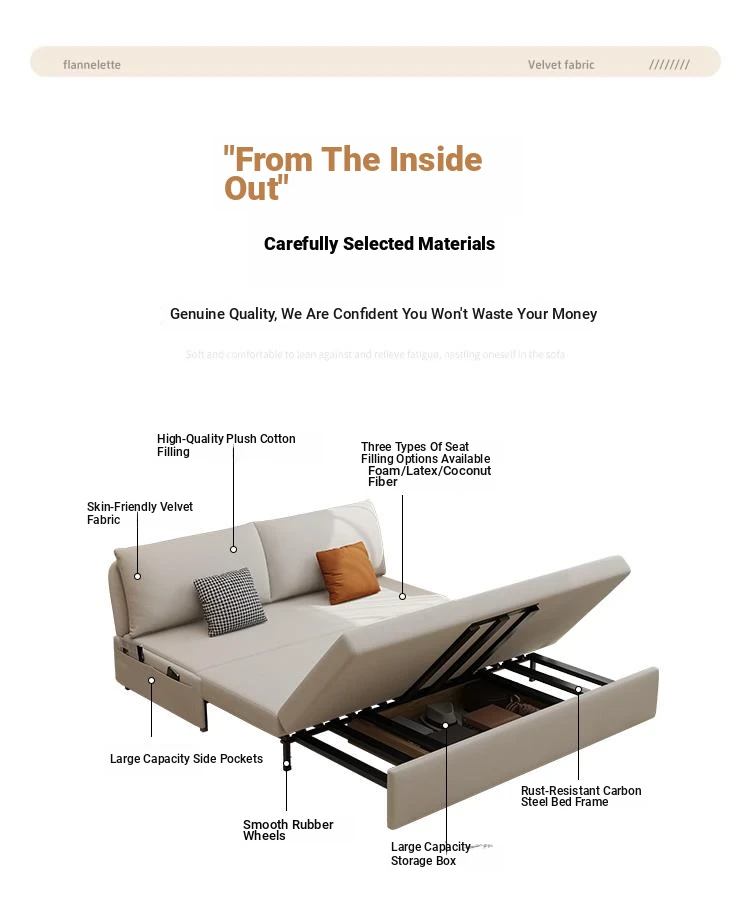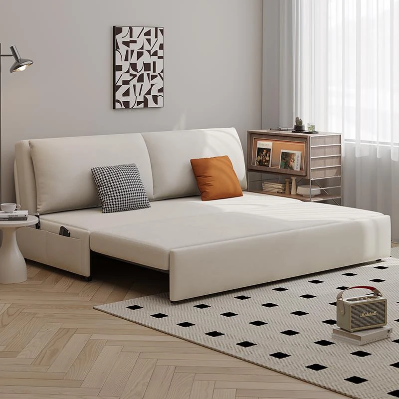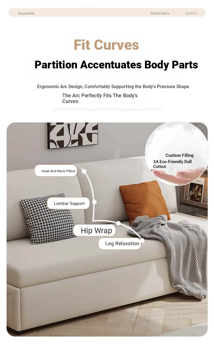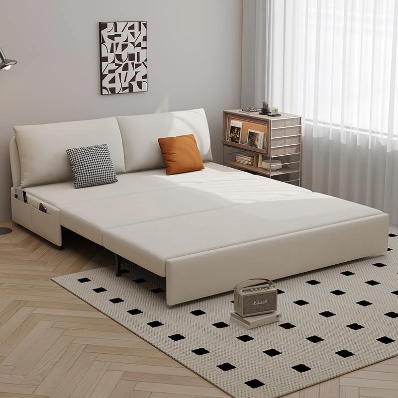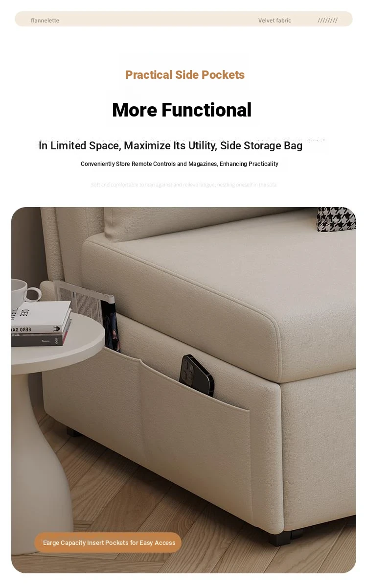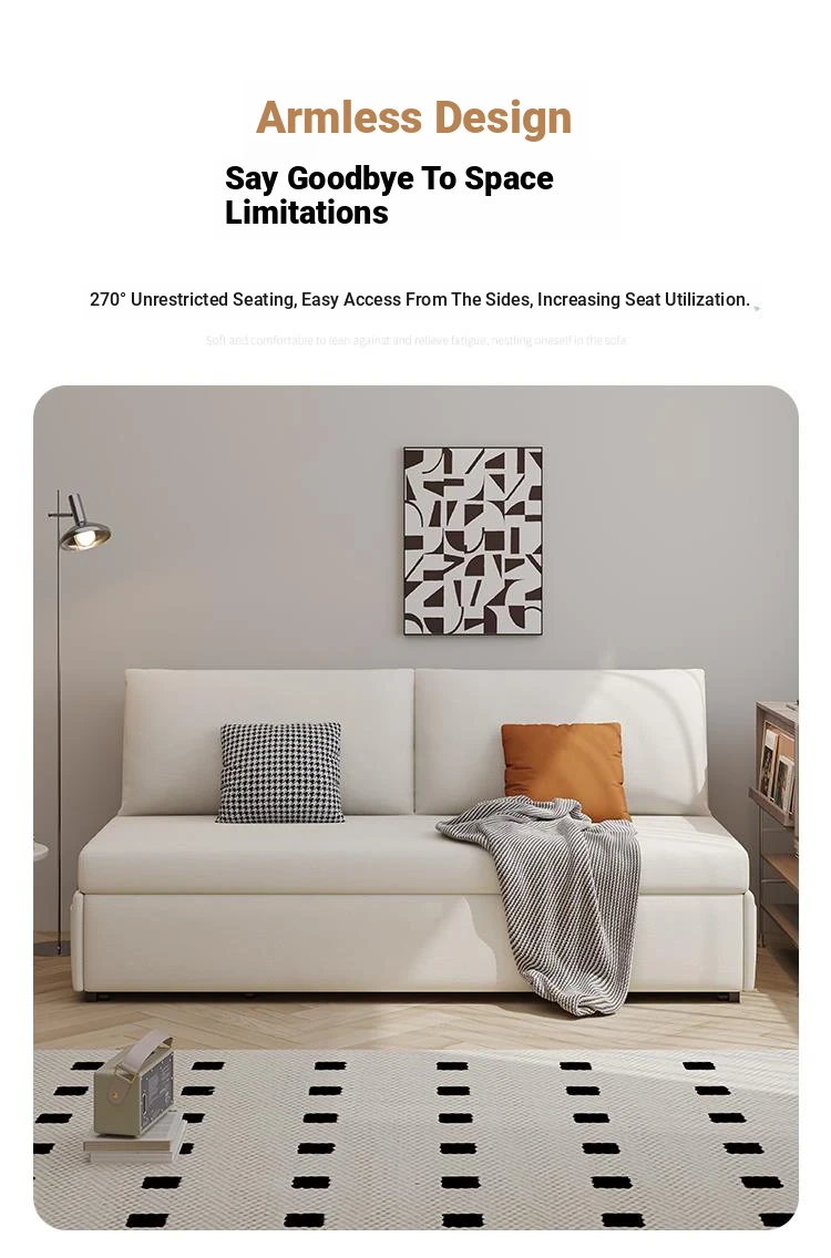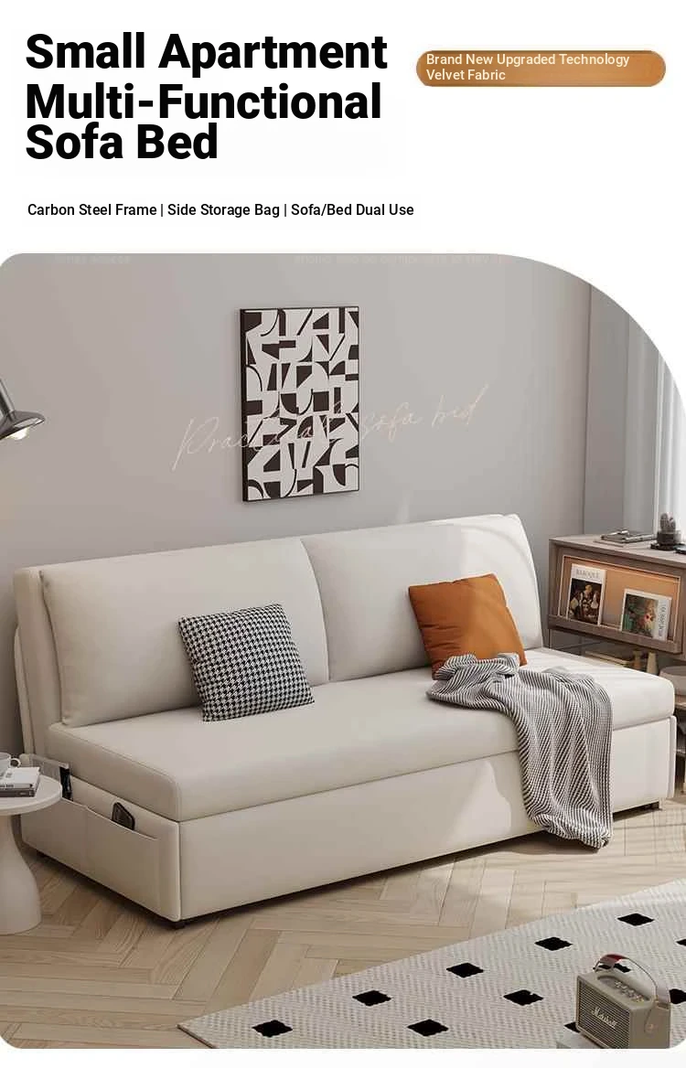 [Free Shipping to Hong Kong] Creamy Velvet Sofa Bed with No Arms - Space-Saving Multi-Functional Design for Small Living Rooms and Bedrooms, Easily Convertible for Ultimate Comfort.