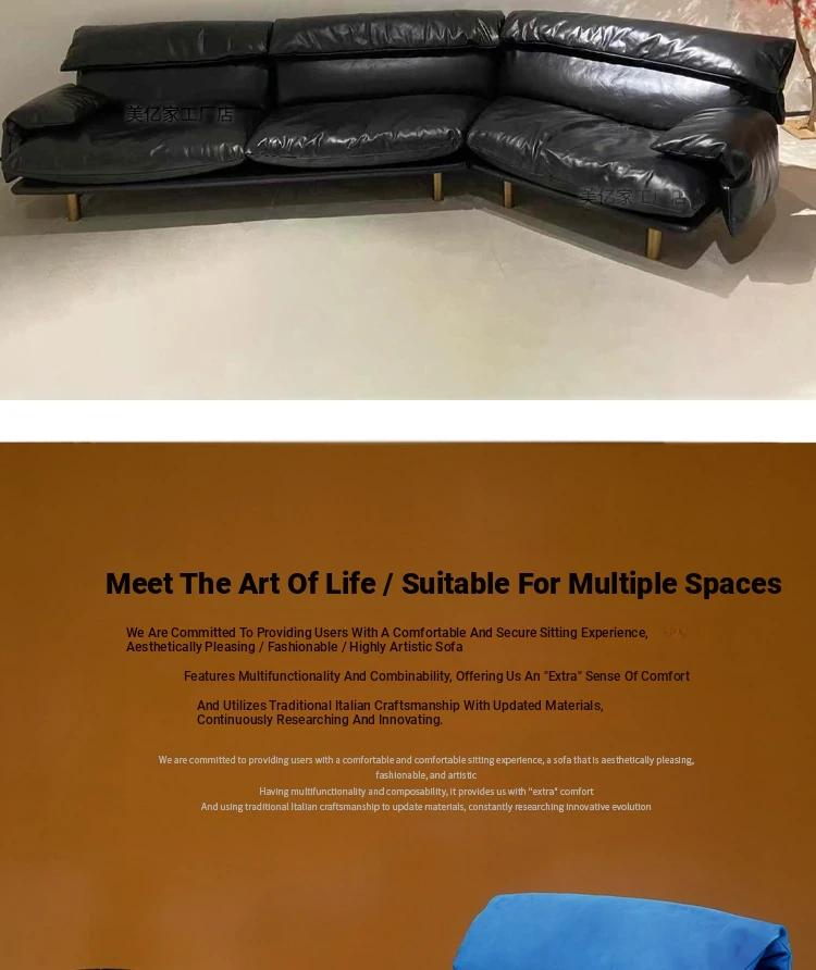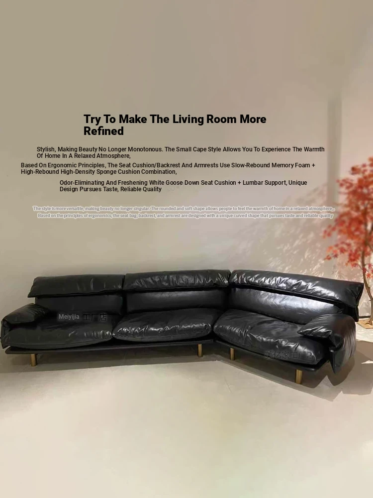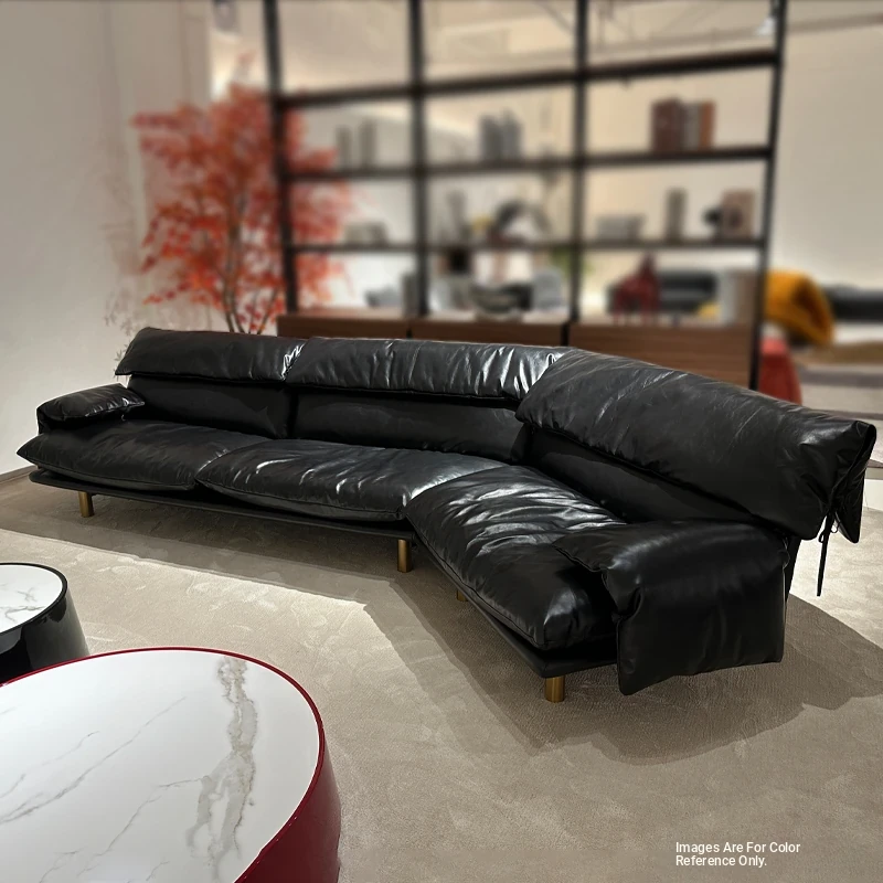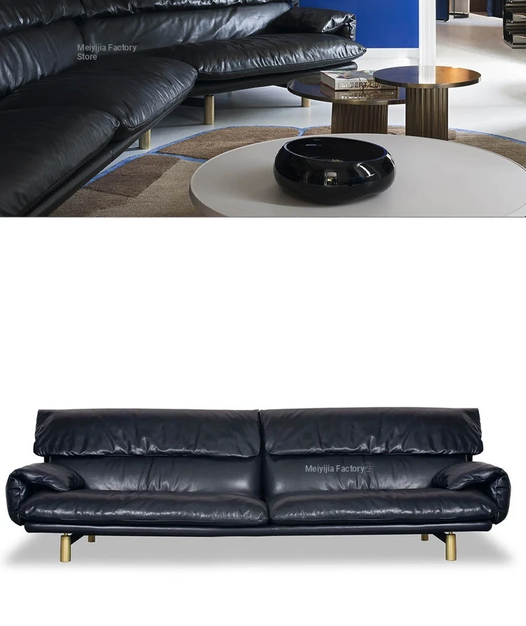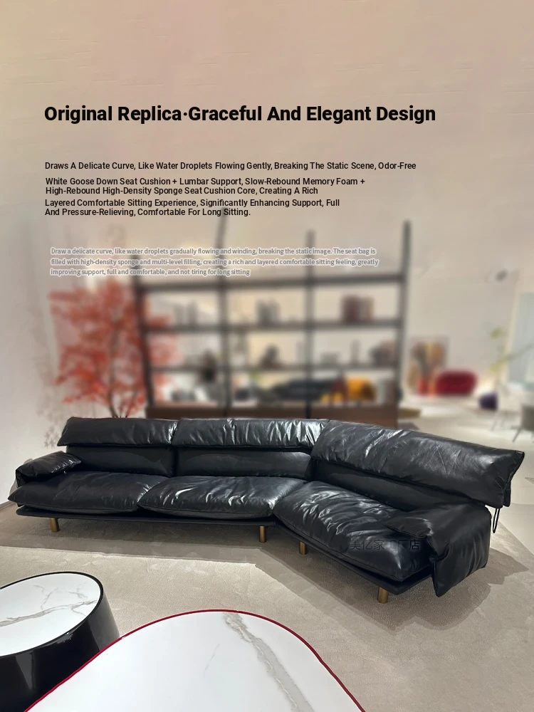 Italian Top Grain Leather Designer Sofa with Minimalist Aesthetic - Lightweight Fabric and Down-Filled Cushions for a Chic Living Room.
