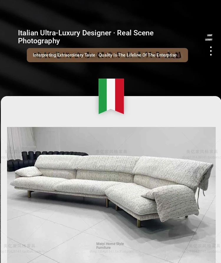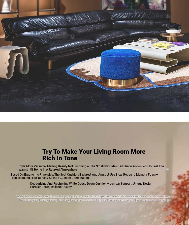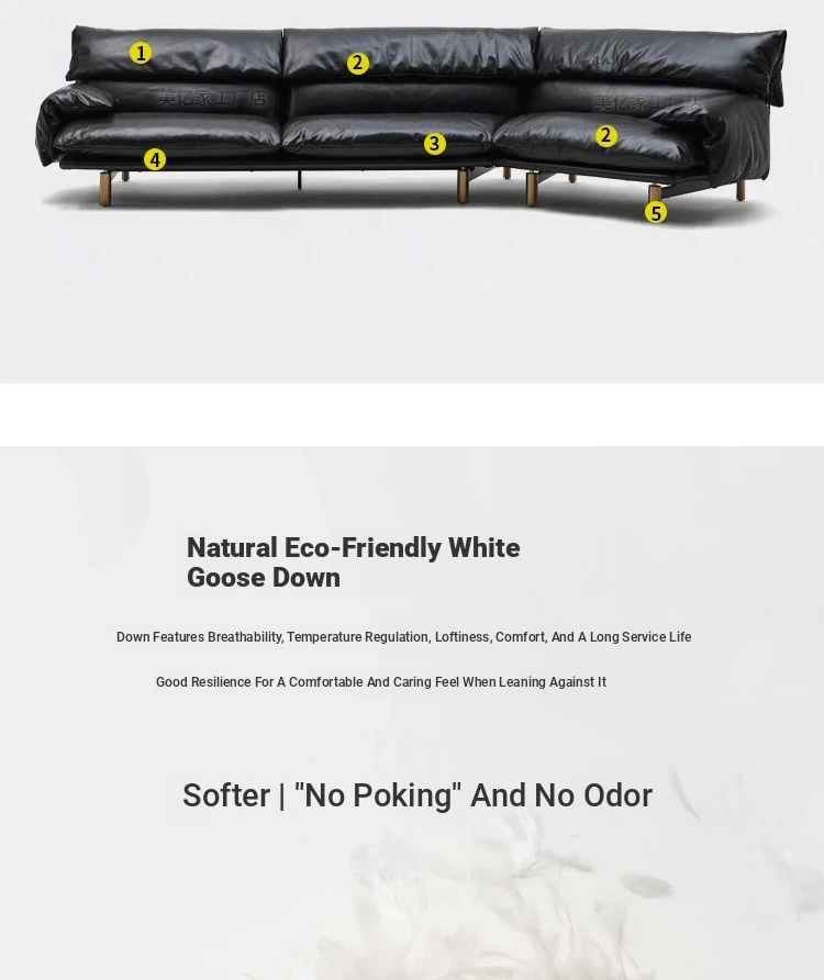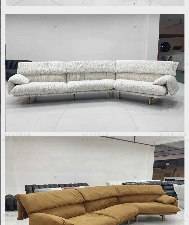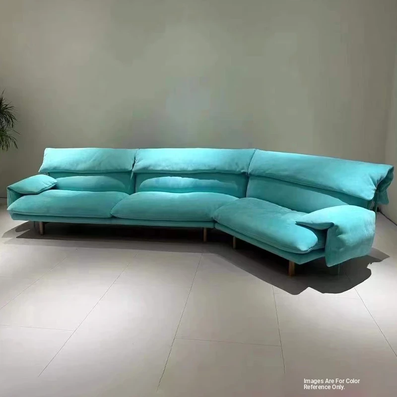 Italian Top Grain Leather Designer Sofa with Minimalist Aesthetic - Lightweight Fabric and Down-Filled Cushions for a Chic Living Room.
