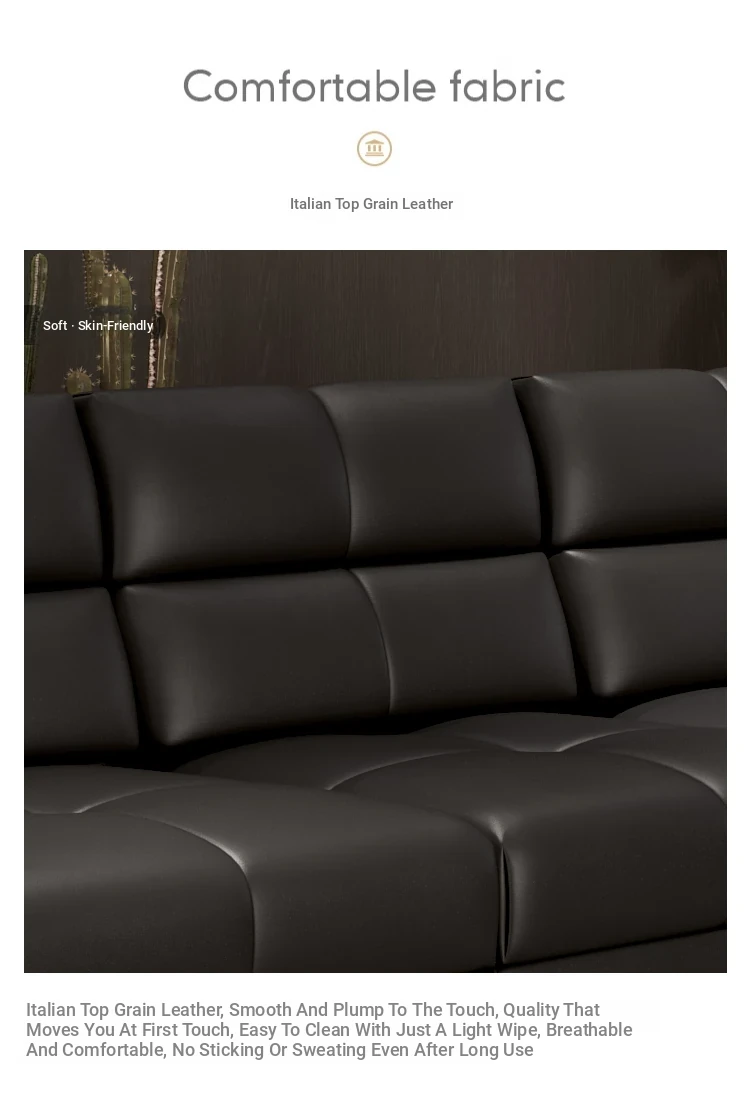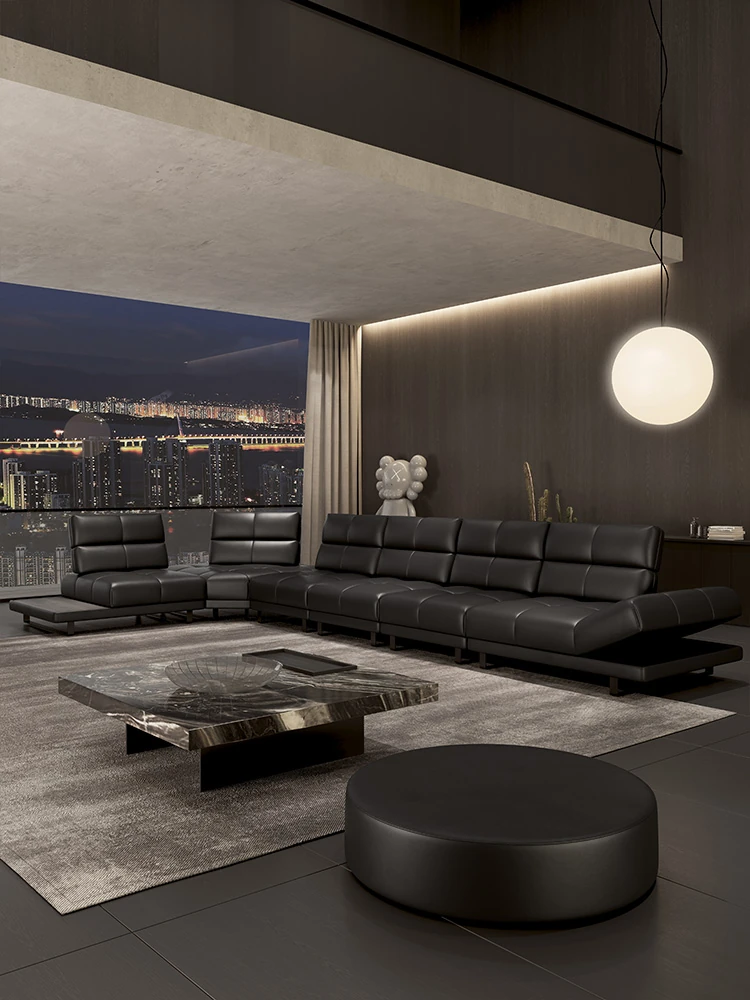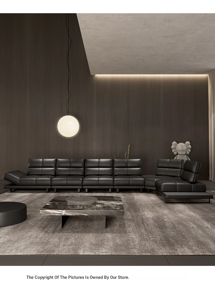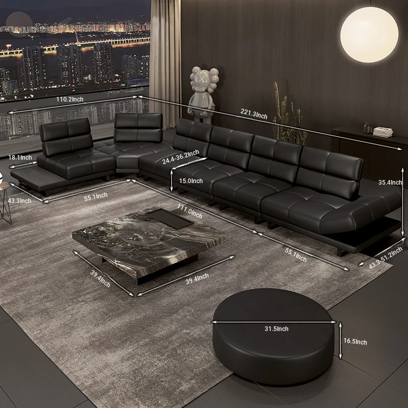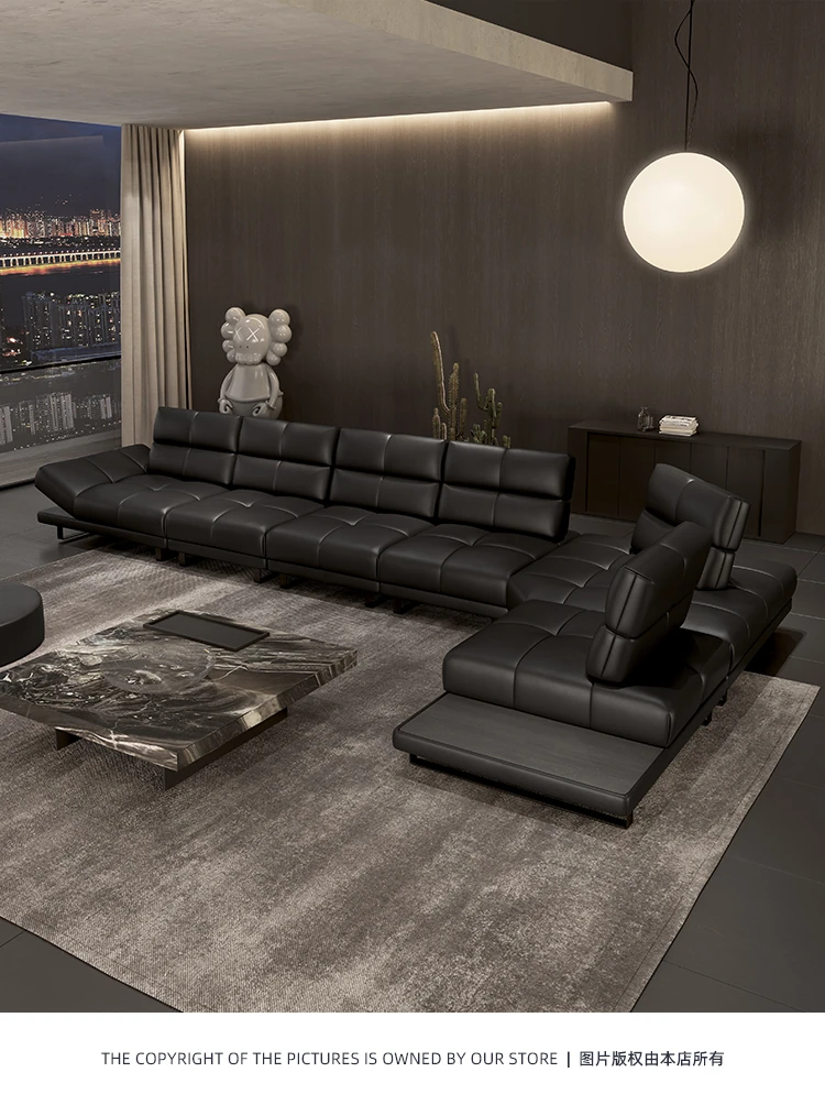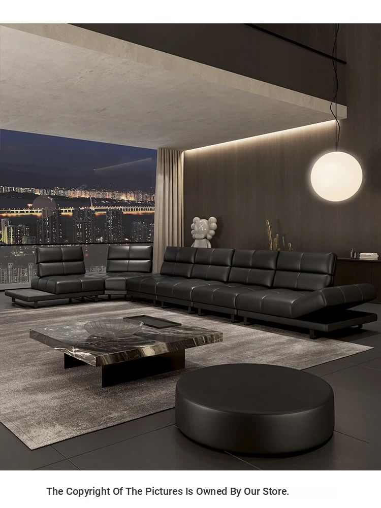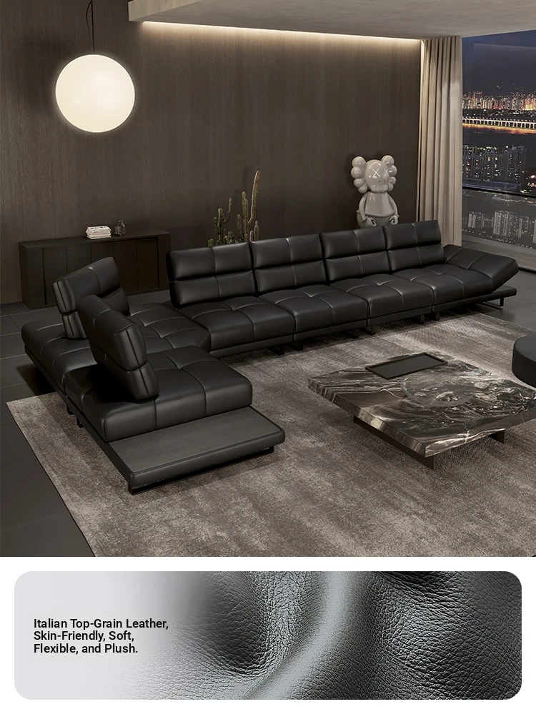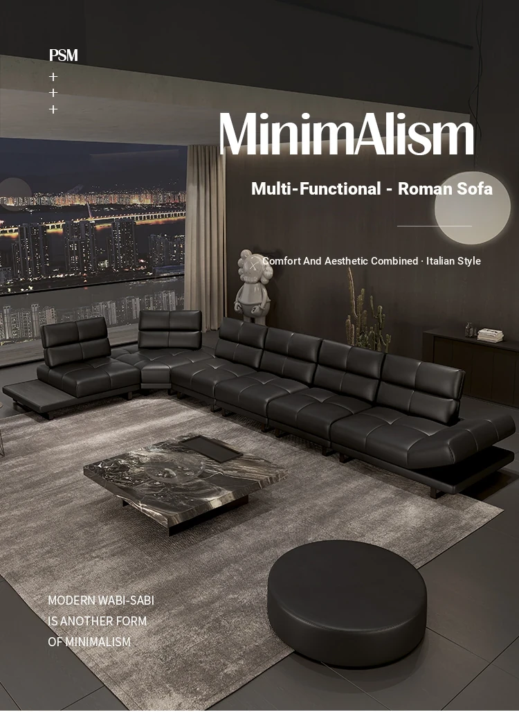 Roman Minimalist Sofa - Full and Half Leather Options - Luxurious Black Sofa for Spacious Living Rooms - Perfect for Modern Homes