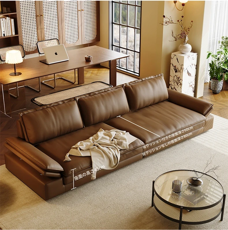 本革ソファー|2025年新作|モダンミニマリストデザイン|小型リビングに最適|贅沢感溢れるレザーソファーコンビネーション|快適さとスタイルを両立!