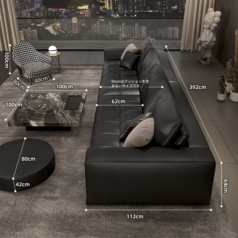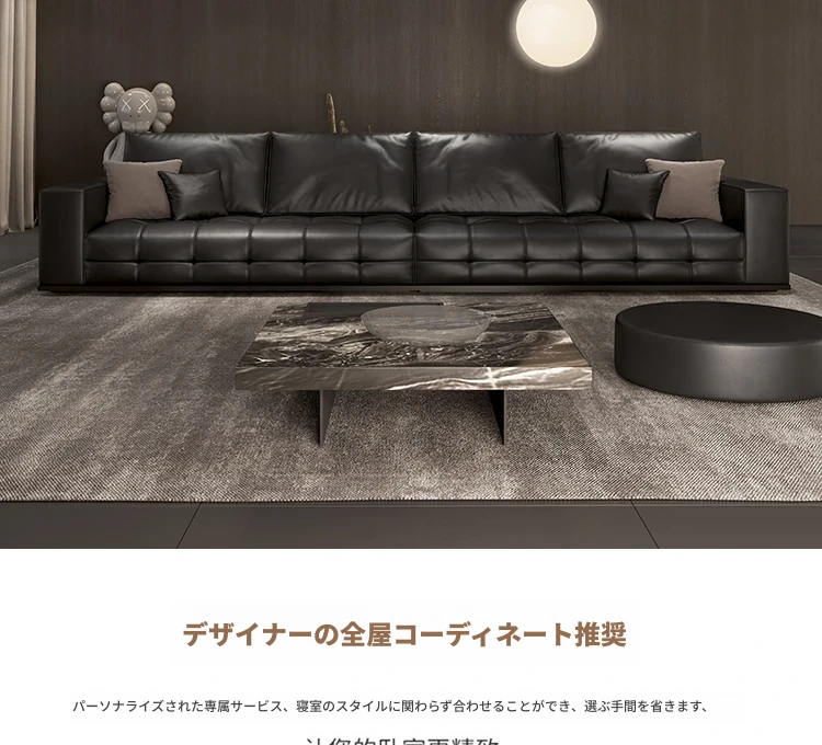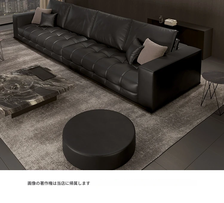 2025年新作!ローランス本革ソファ - 高級レザー使用、シックなブラックデザインのダブルソファ。リビングにぴったりのスタイリッシュなアイテムで、心地よいひとときをお楽しみください!