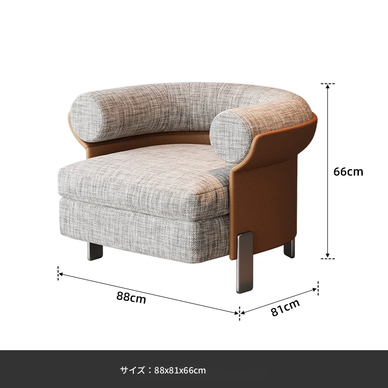 オレンジソファチェア【コットンリネン+ナッパレザー】