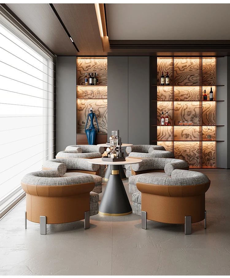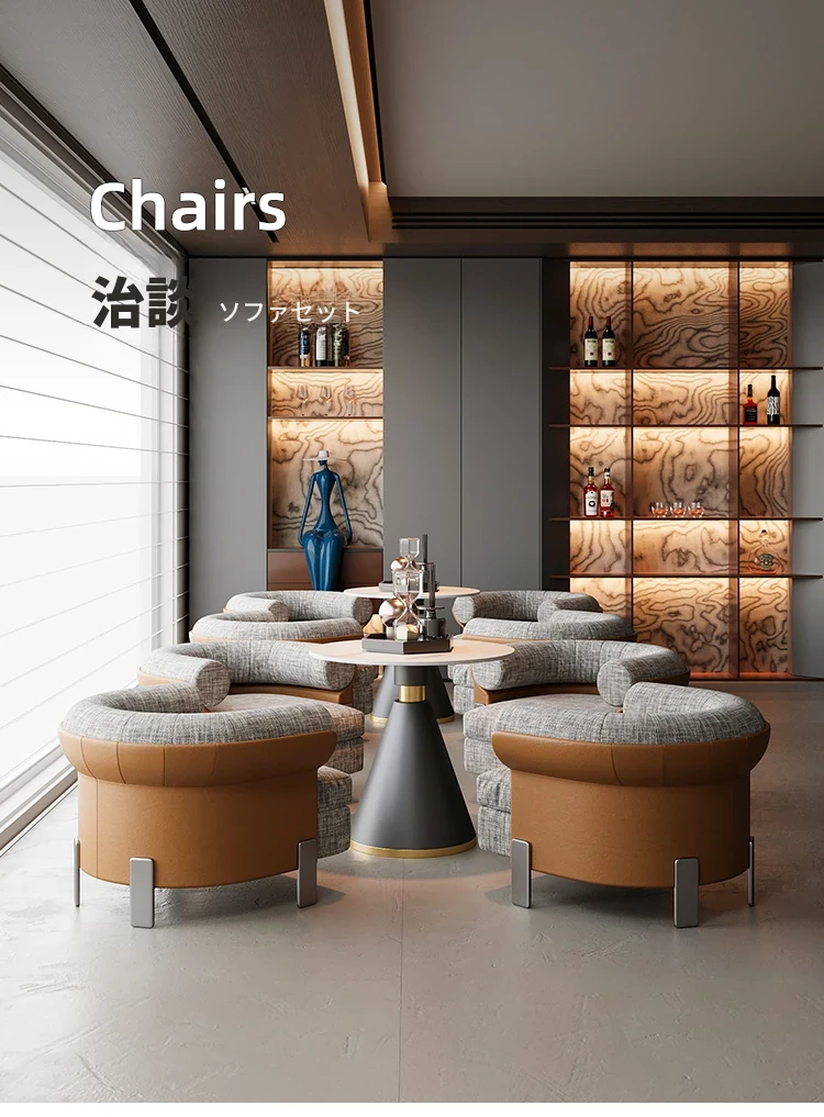 ラグジュアリーな販売所、ホテル、ビジネスラウンジ、美容院、カフェ、休憩エリア、クラブのための接客・商談用デスク&チェアセット。洗練されたデザインで、快適な空間を演出します!