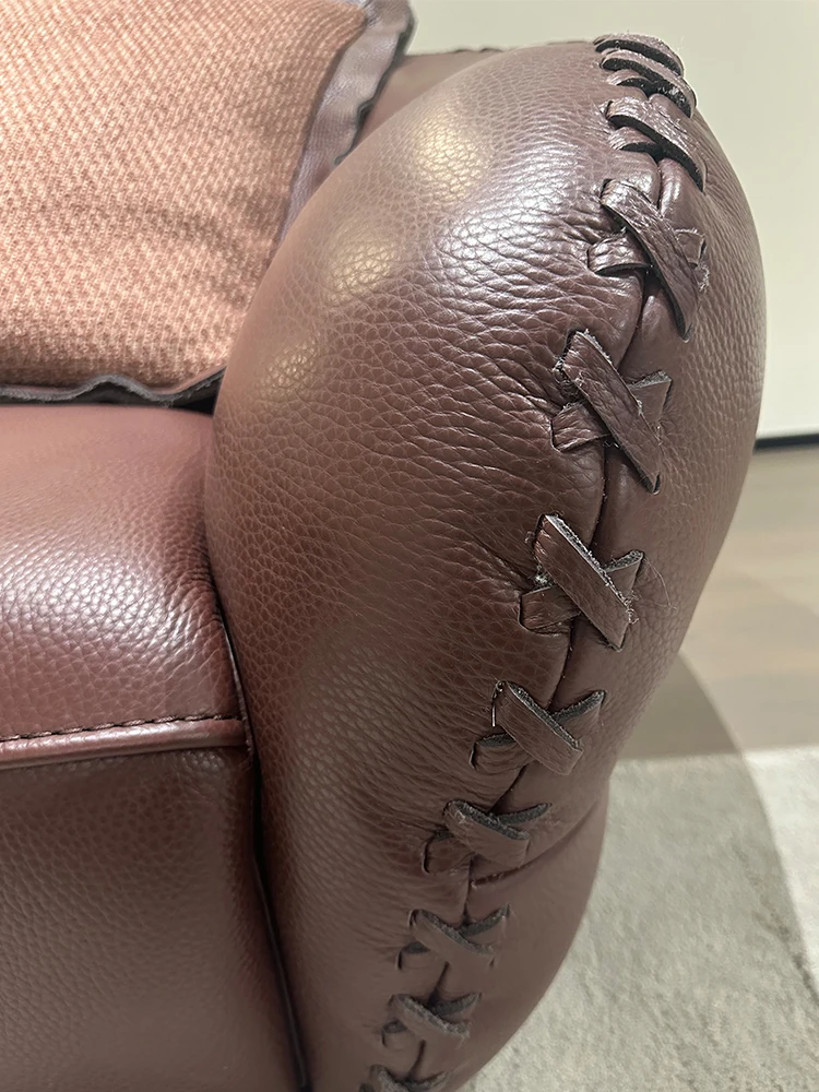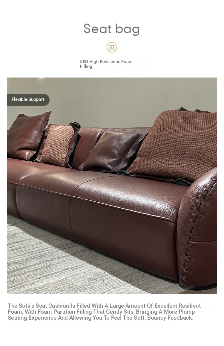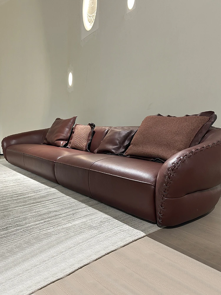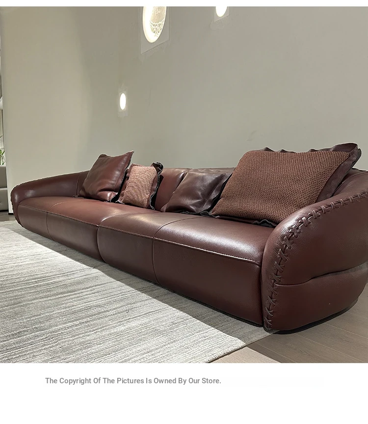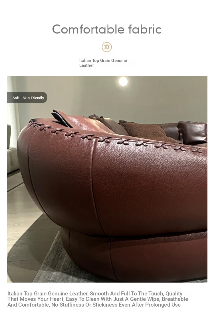 Genuine Leather Italian Minimalist Curved Sofa - Luxurious Velvet Living Room Reception Sofa for Spacious Homes - Model C-050 in Elegant Red