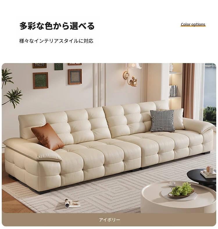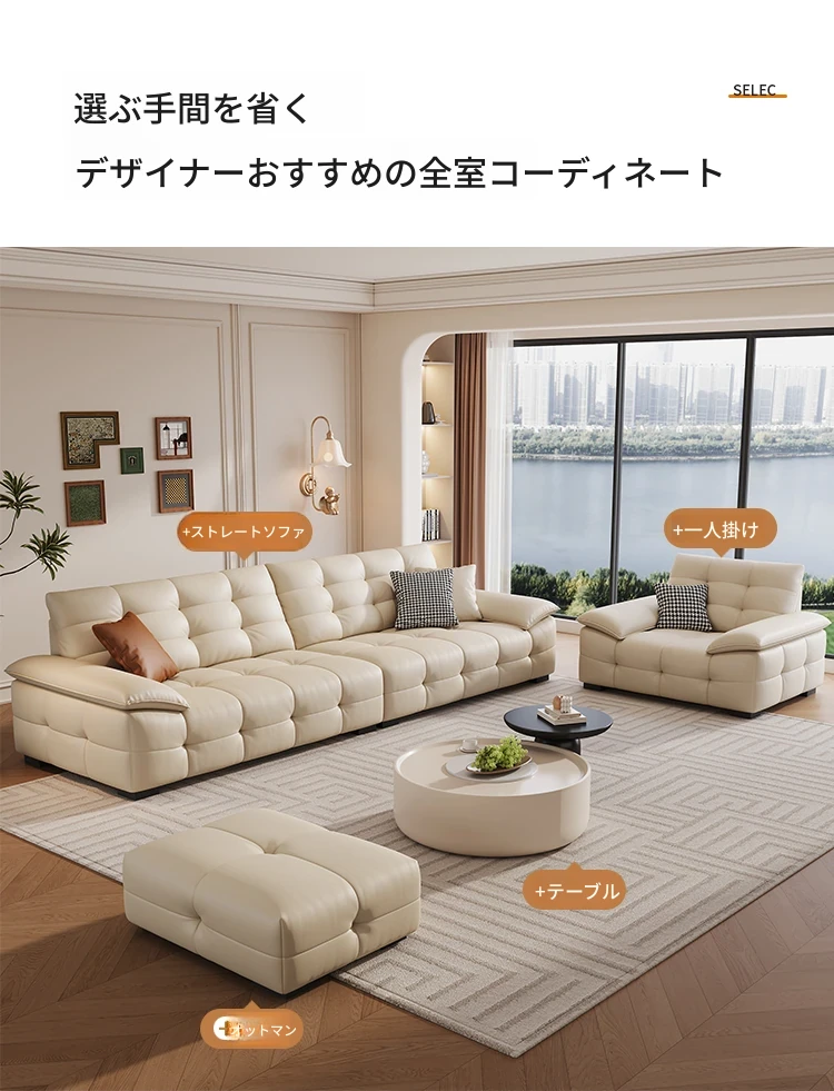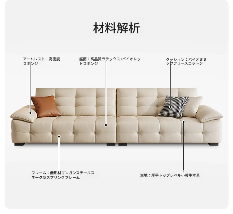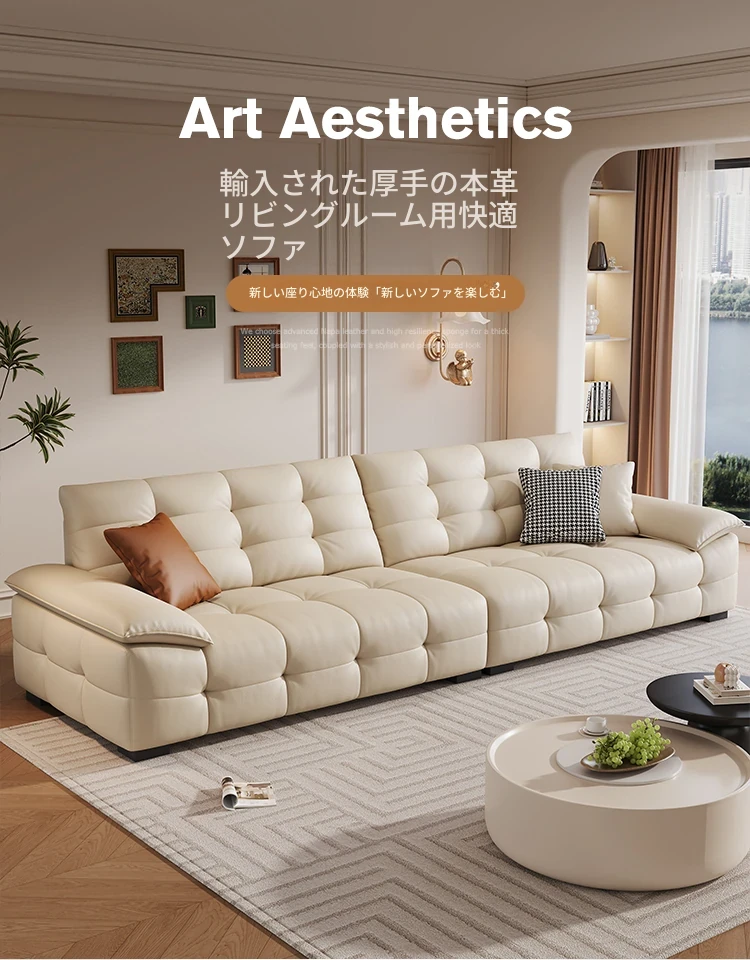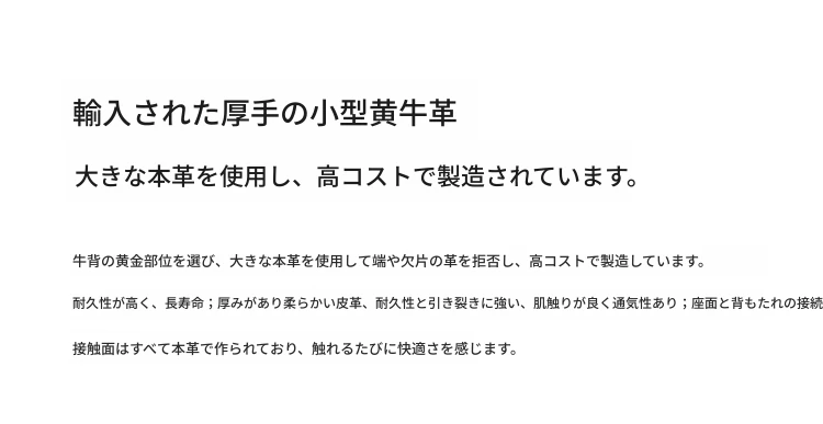 ローレンスソファ イタリアンミニマリズム 本革使用 高背もたれ 小型リビングに最適な牛革ソファ 直置きタイプでスタイリッシュな空間を演出!