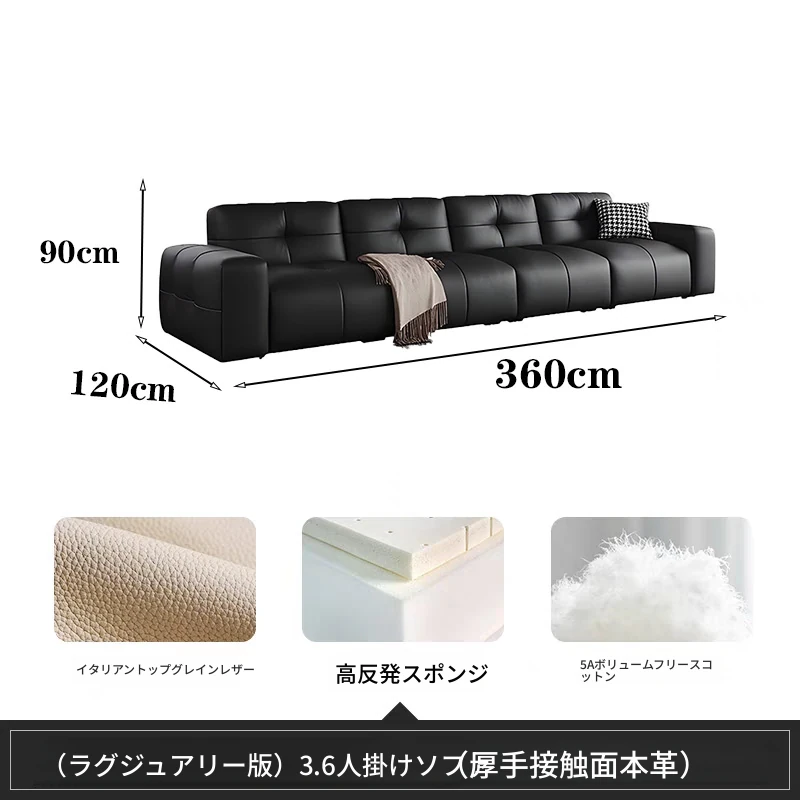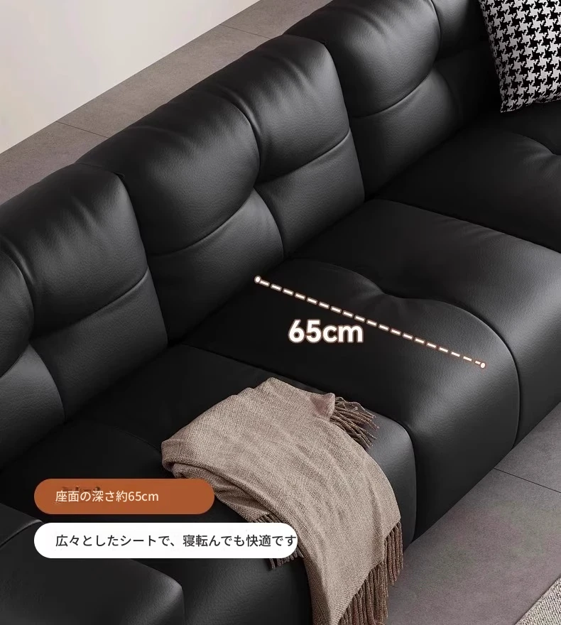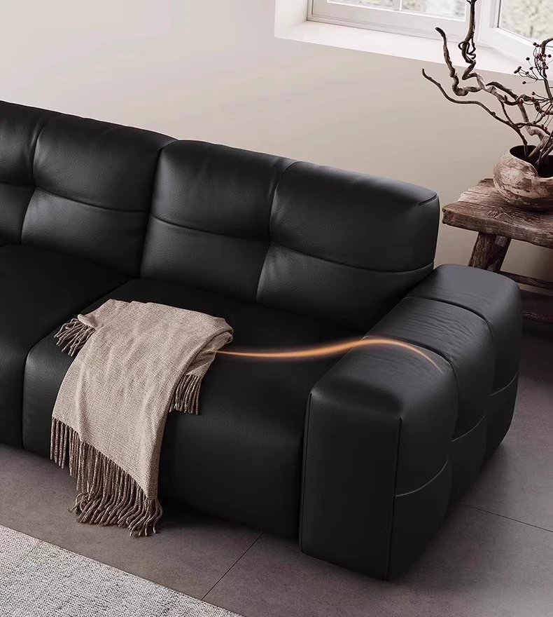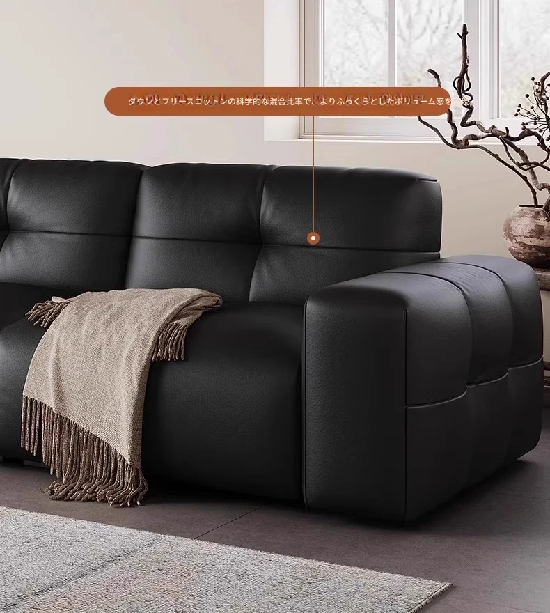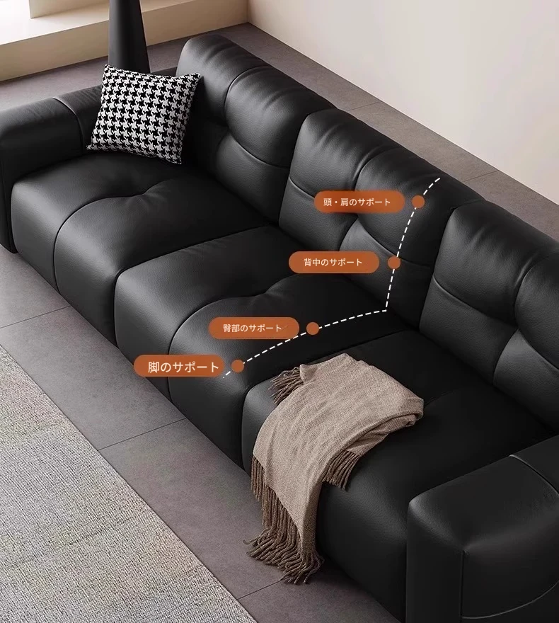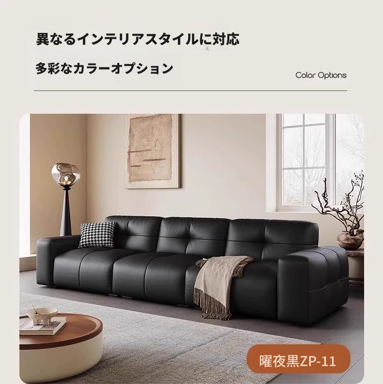 ピクセル・ビッグブラック牛革ソファ|シンプルでモダンなデザイン|背もたれ調整可能|最高級のトップグレイン牛革使用|リビングルームにぴったりの贅沢な居心地を提供!