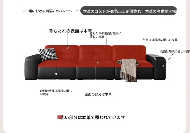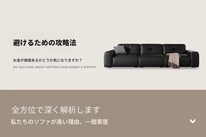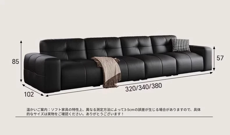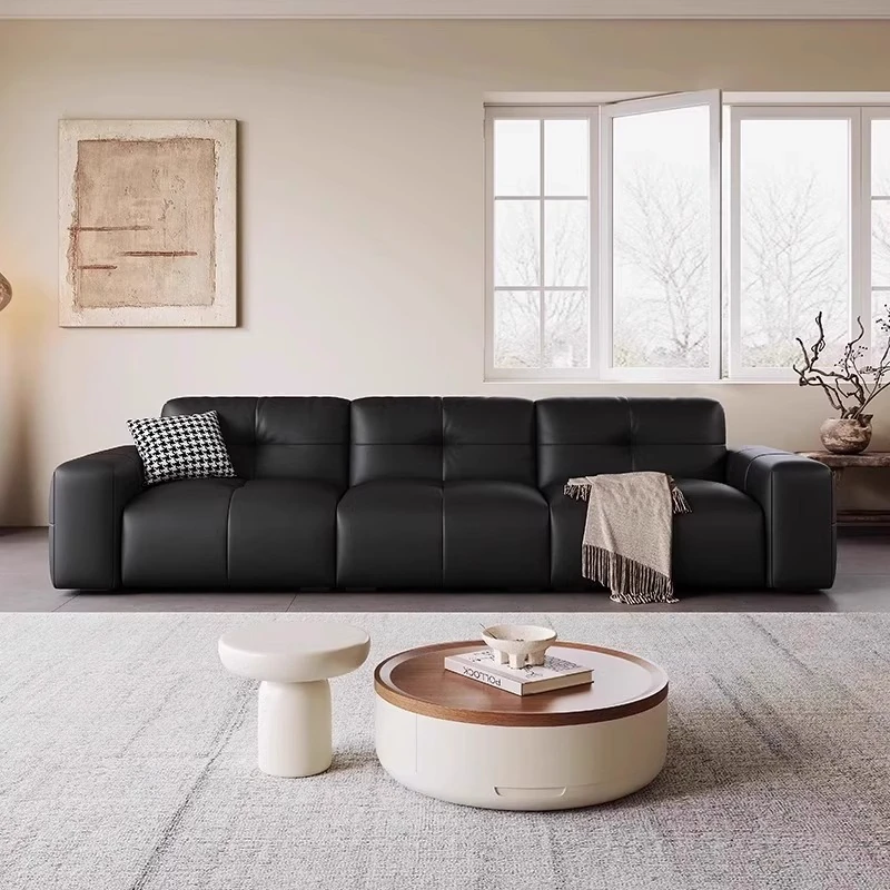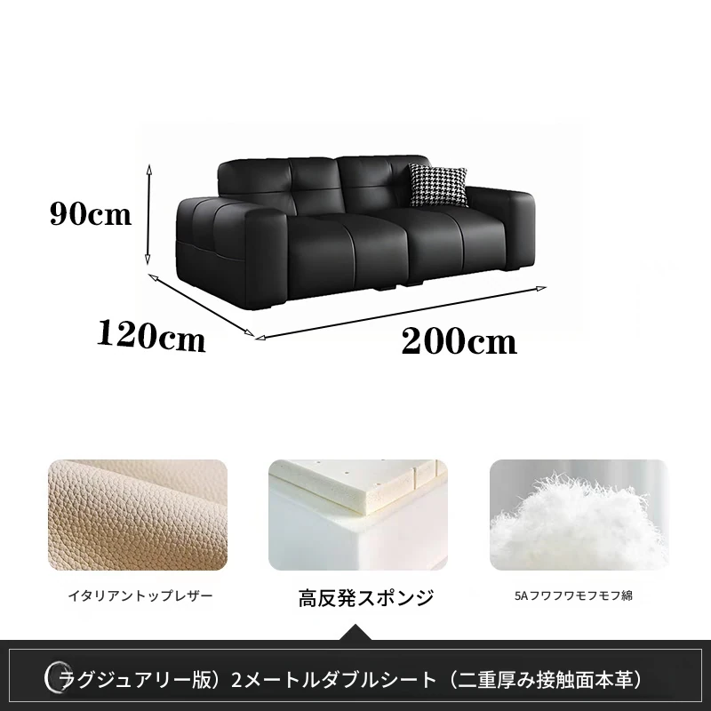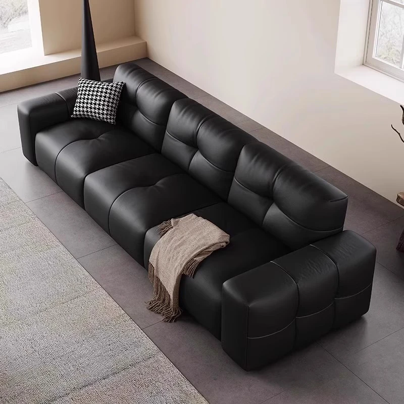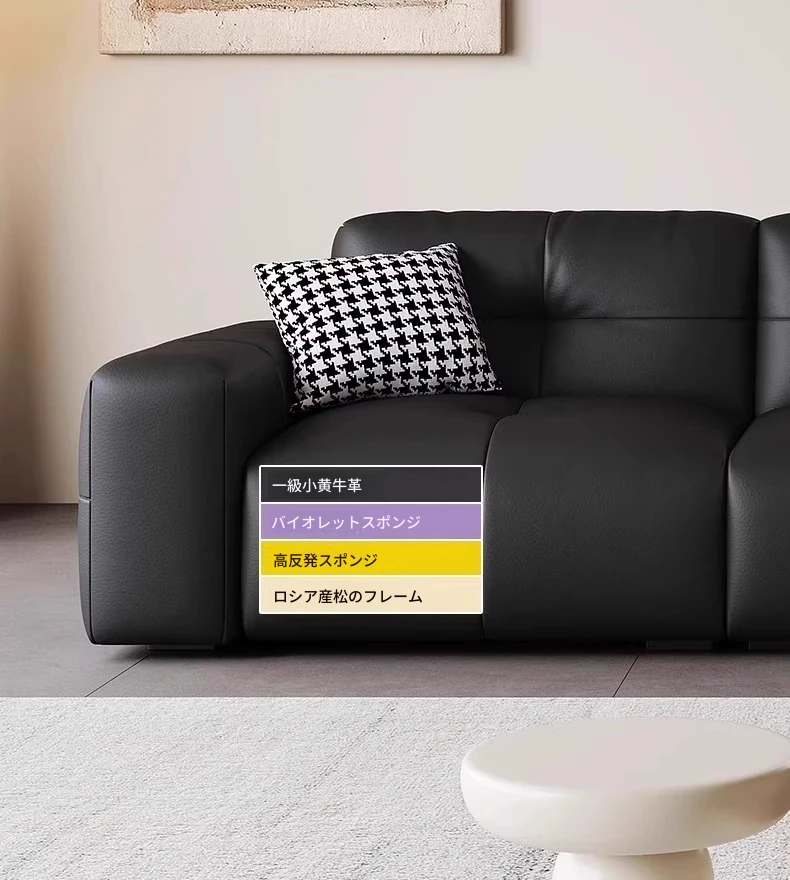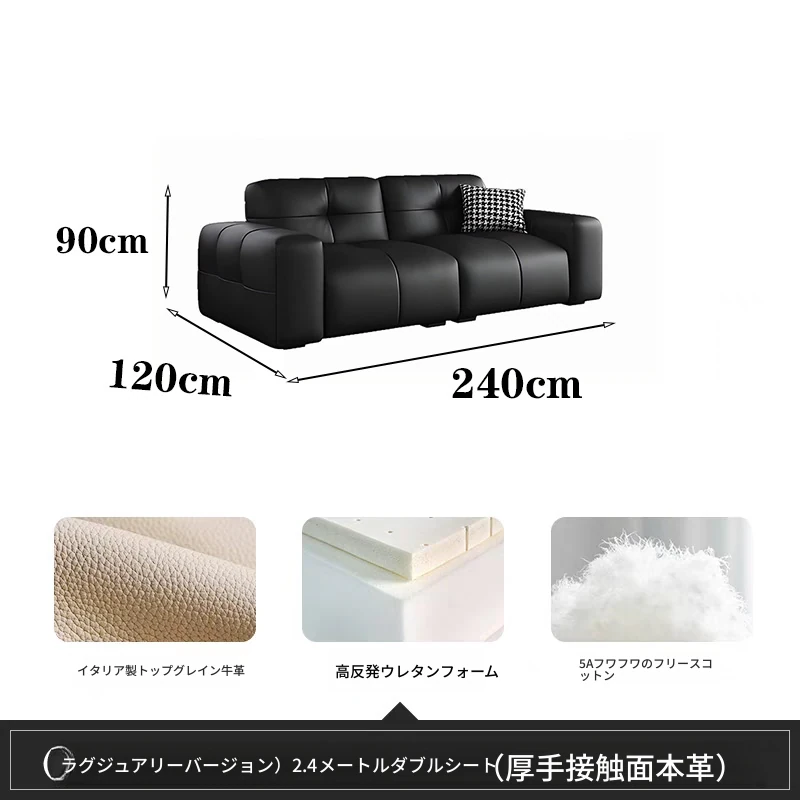 ピクセル・ビッグブラック牛革ソファ|シンプルでモダンなデザイン|背もたれ調整可能|最高級のトップグレイン牛革使用|リビングルームにぴったりの贅沢な居心地を提供!