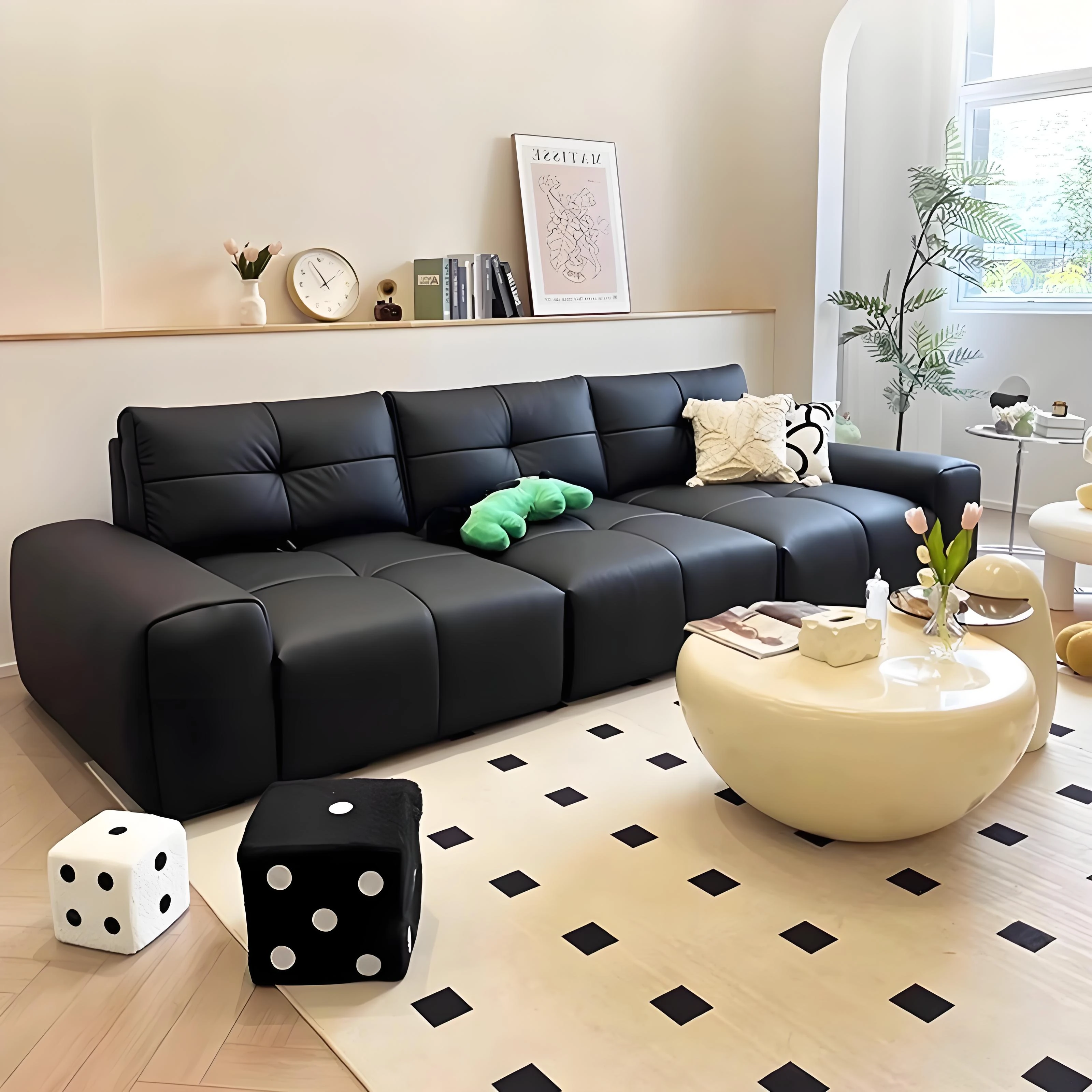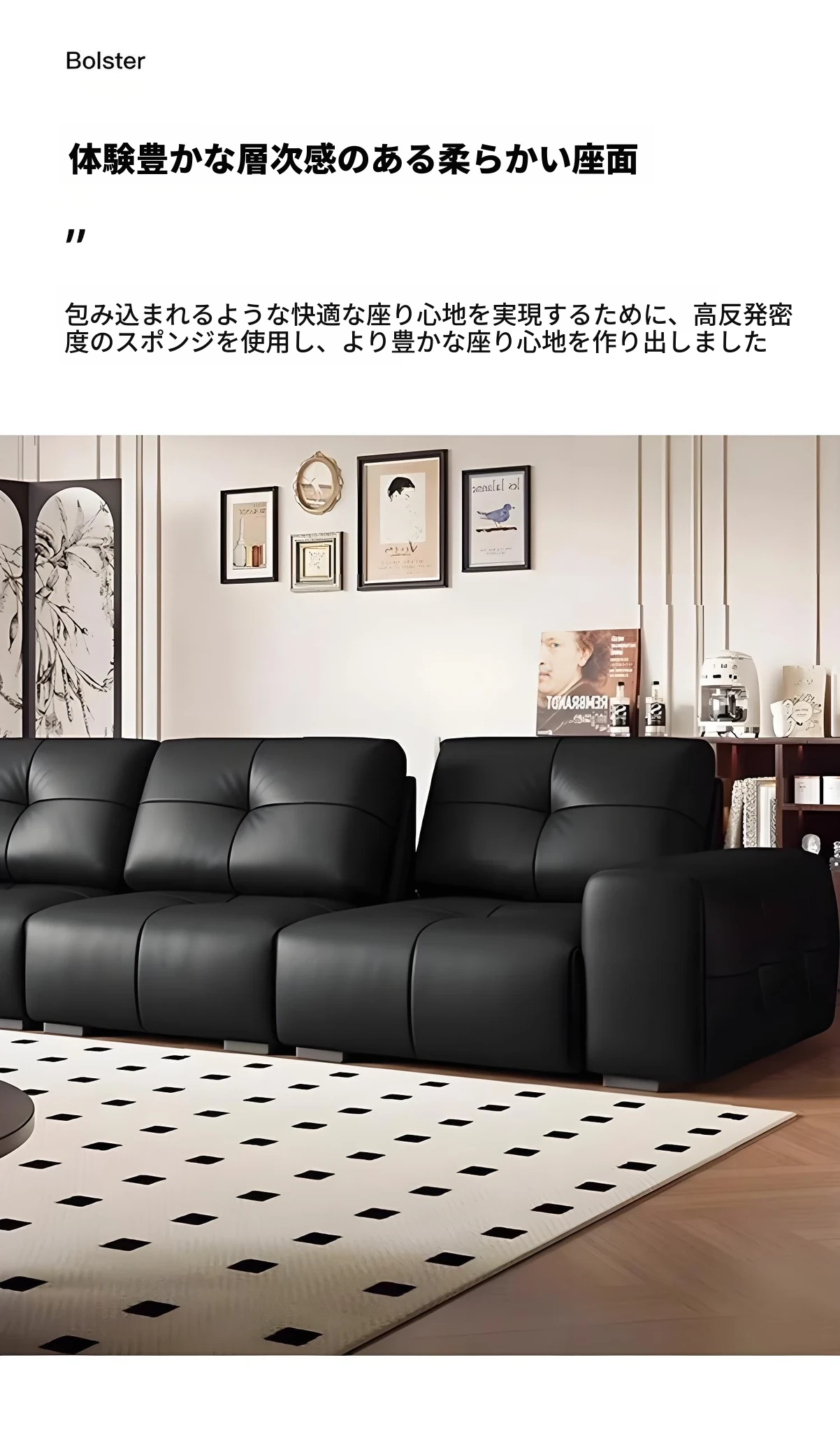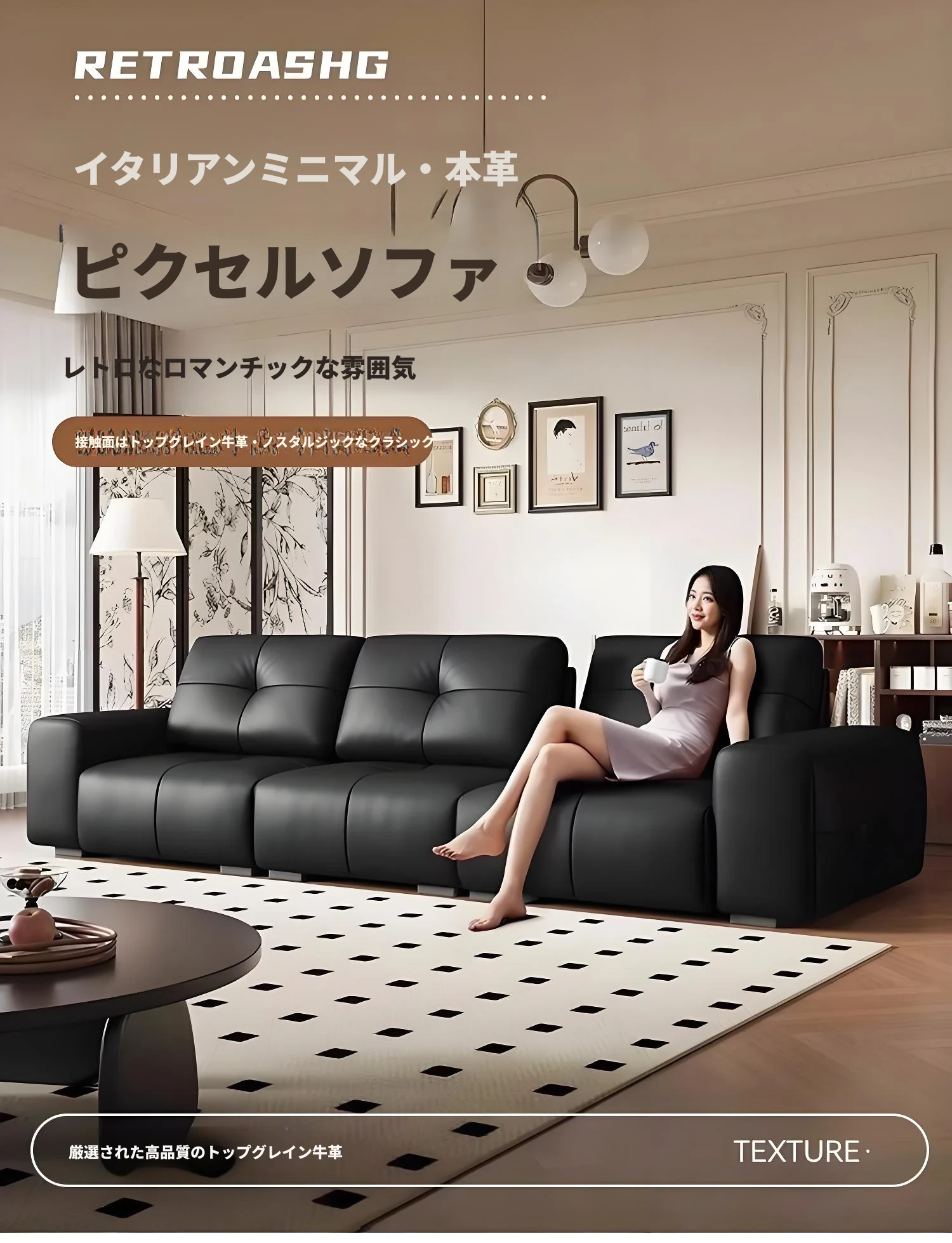 ピクセル大黒牛本革ソファ - シンプルでモダンなデザイン、背もたれは前後調節可能!最高級のトップグレインレザーを使用した客間用ソファ。快適さとスタイルを両立させたあなたのリビングにぴったり!