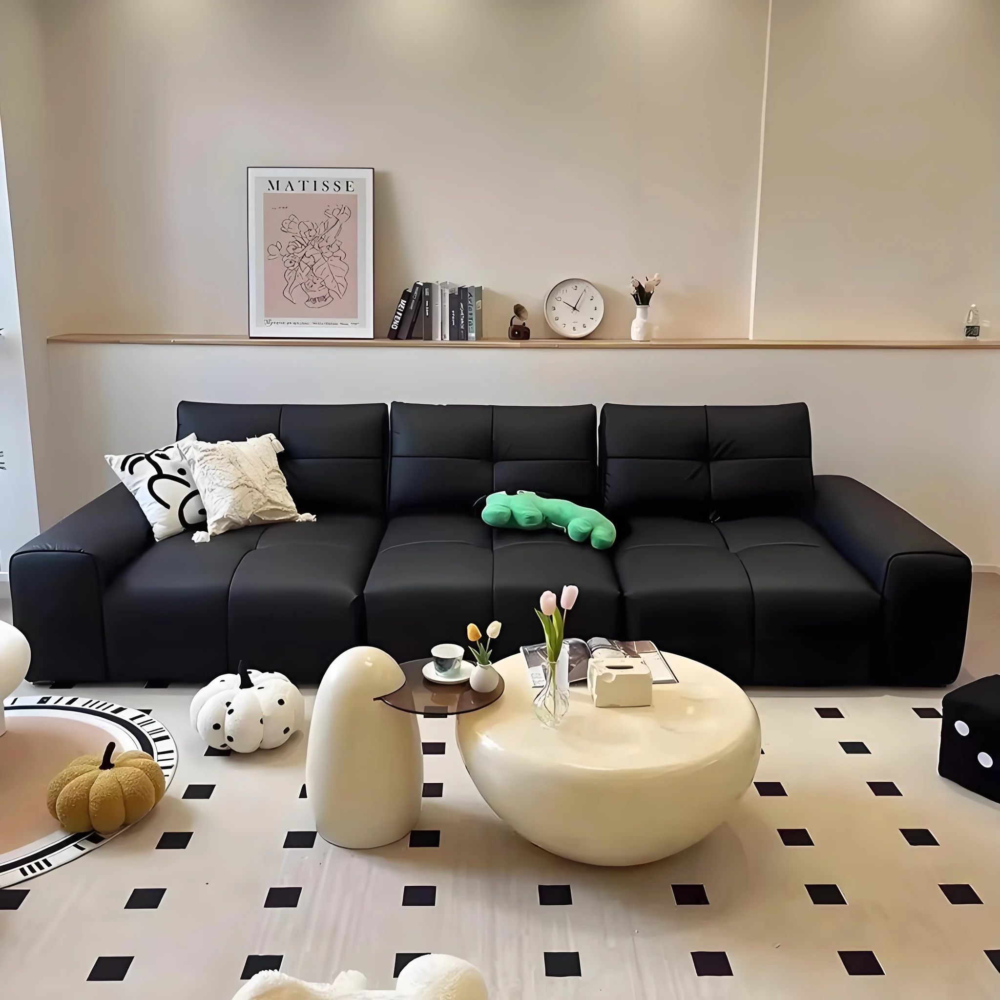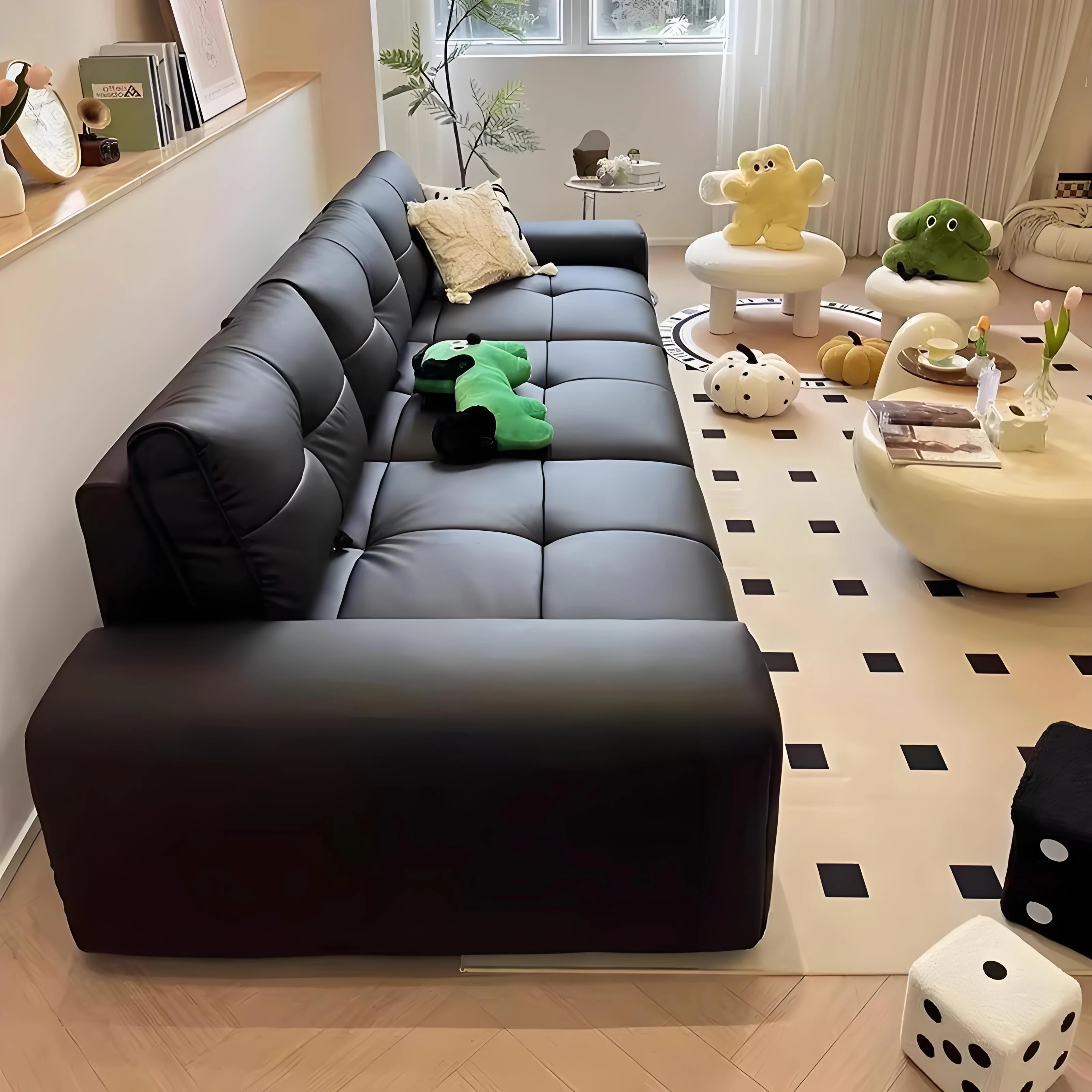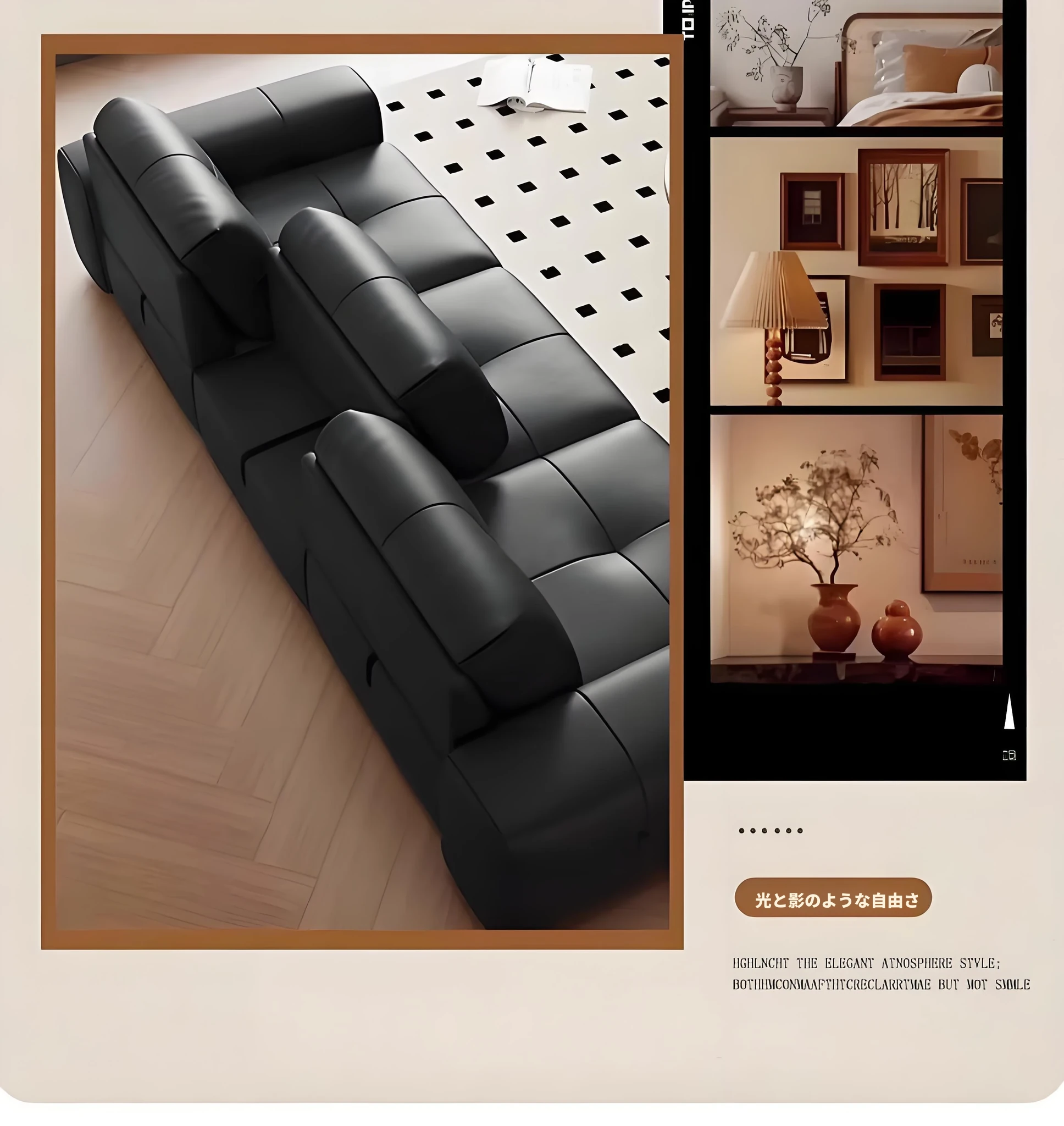 ピクセル大黒牛本革ソファ - シンプルでモダンなデザイン、背もたれは前後調節可能!最高級のトップグレインレザーを使用した客間用ソファ。快適さとスタイルを両立させたあなたのリビングにぴったり!