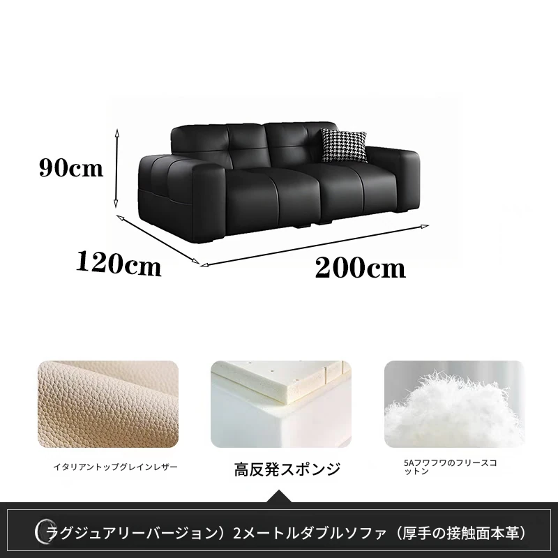 (ラグジュアリーバージョン)2メートル2人掛け2人用(厚手接触面本革)