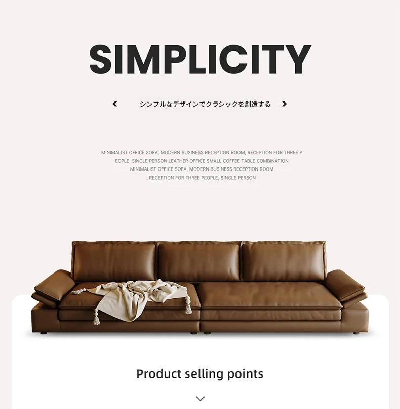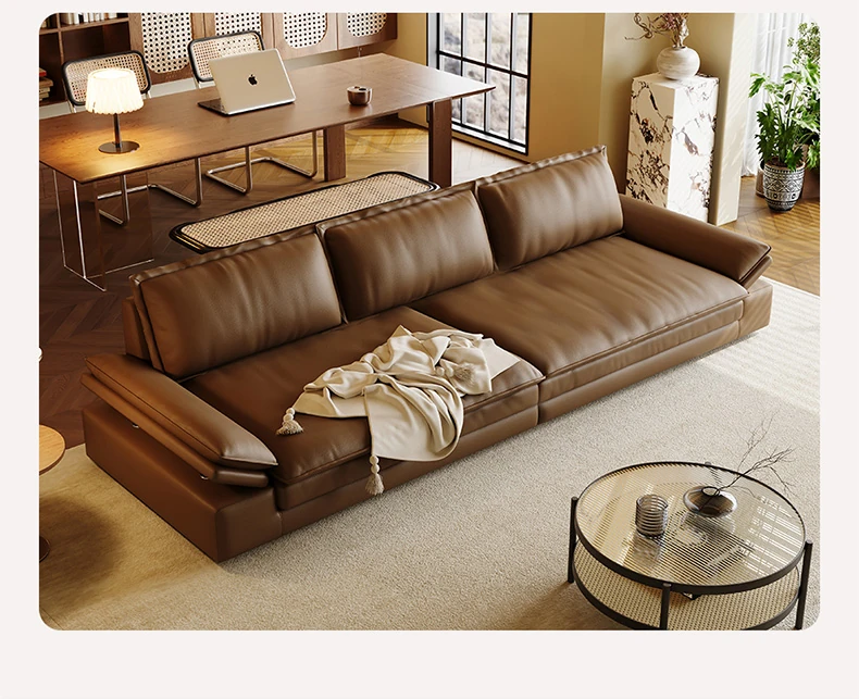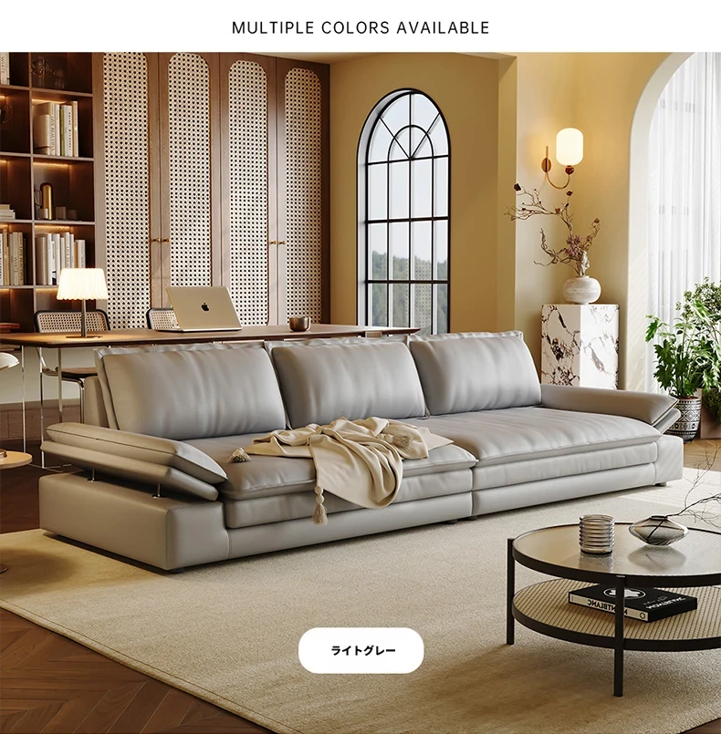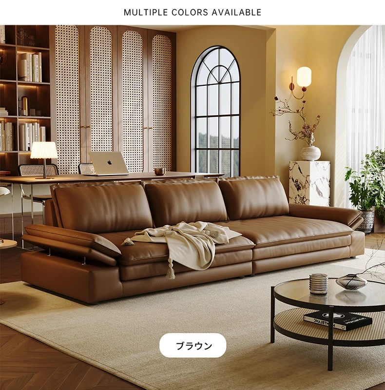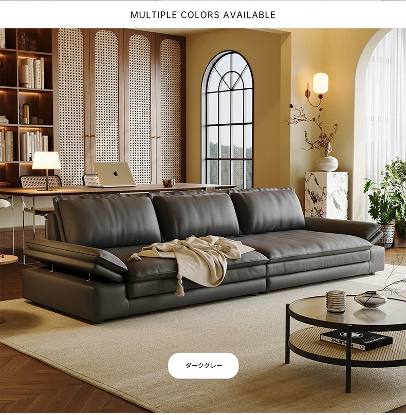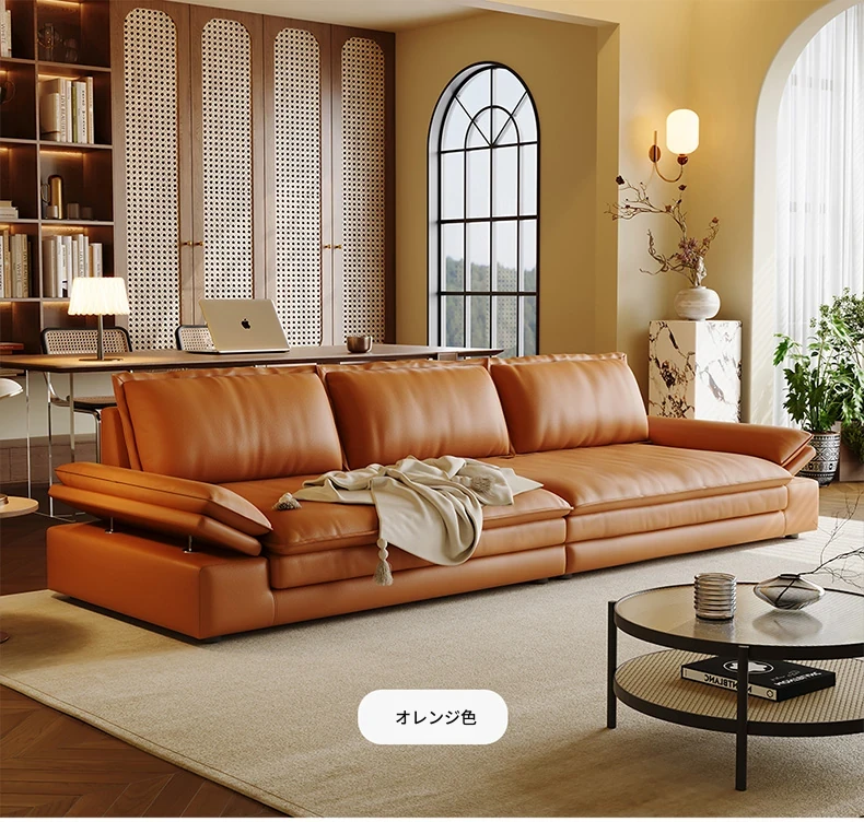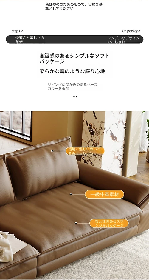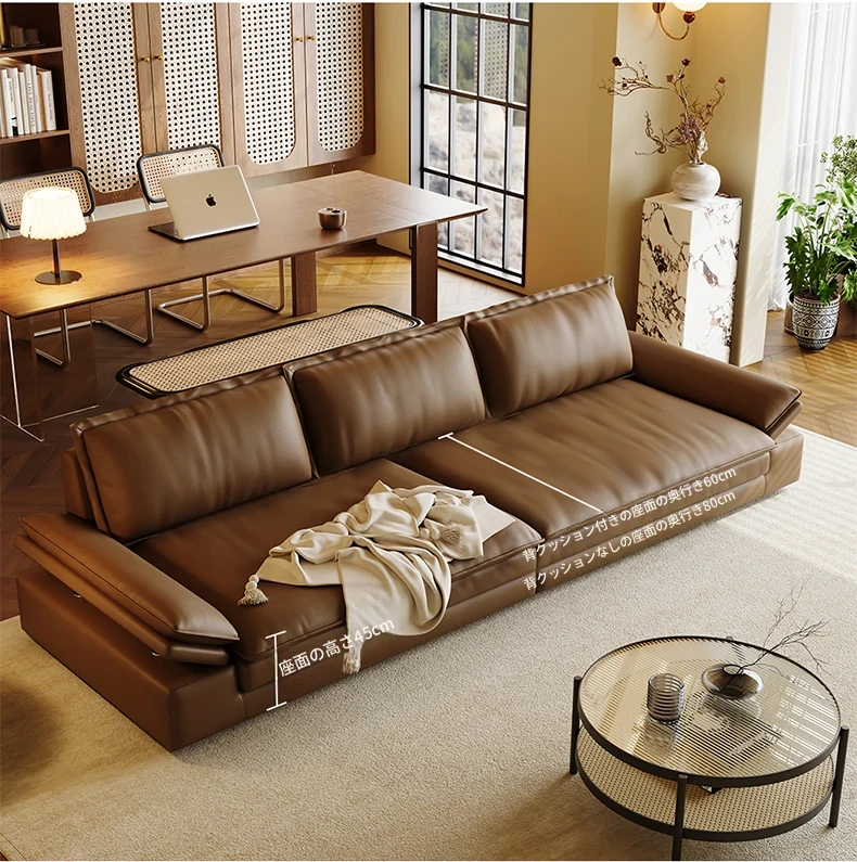 本革使用!2025年新作、モダンでシンプルなデザインのリビング用ミニマルラグジュアリーソファセット。コンパクトな空間にもぴったりな、牛革製の高品質ソファです!