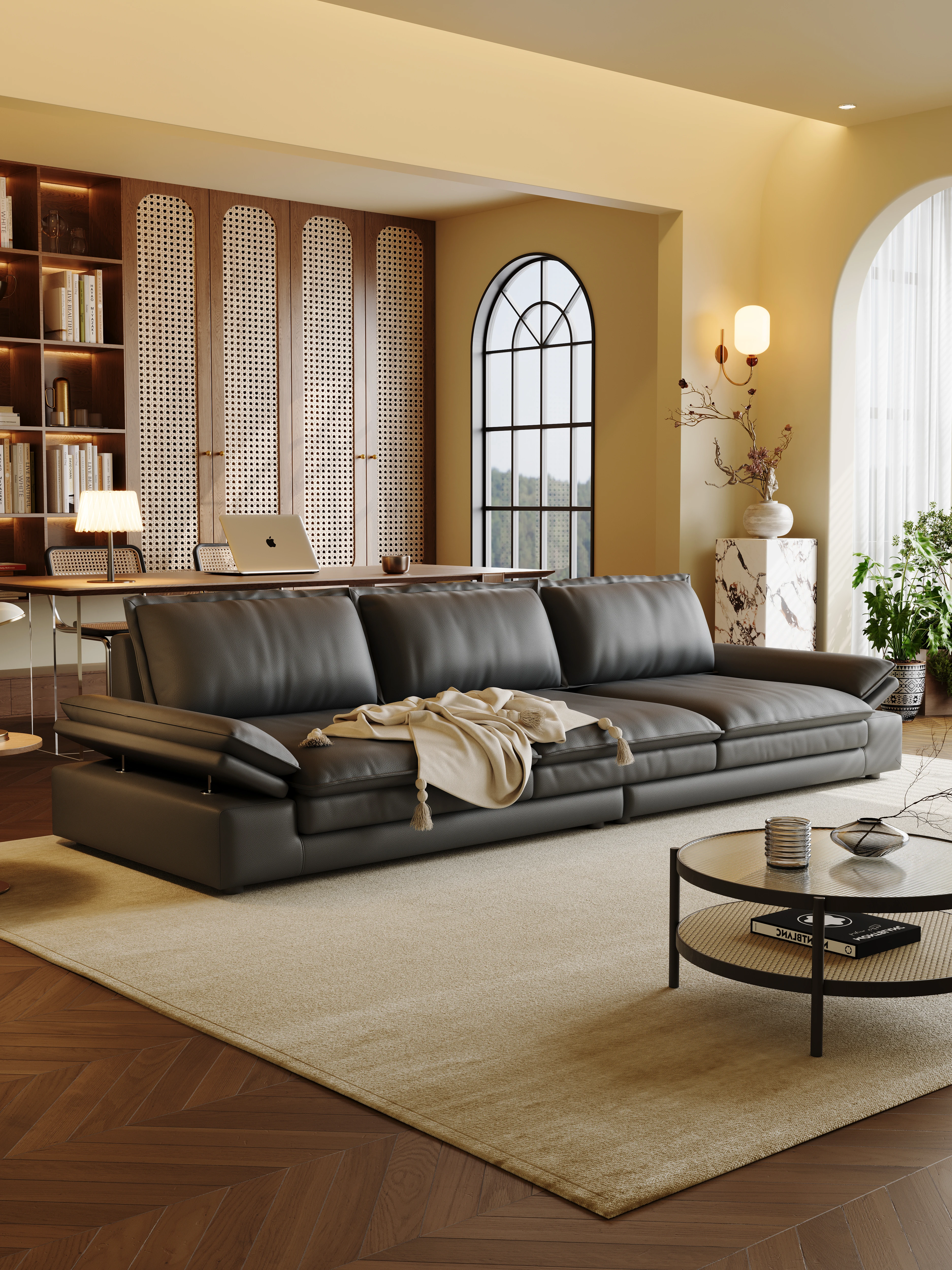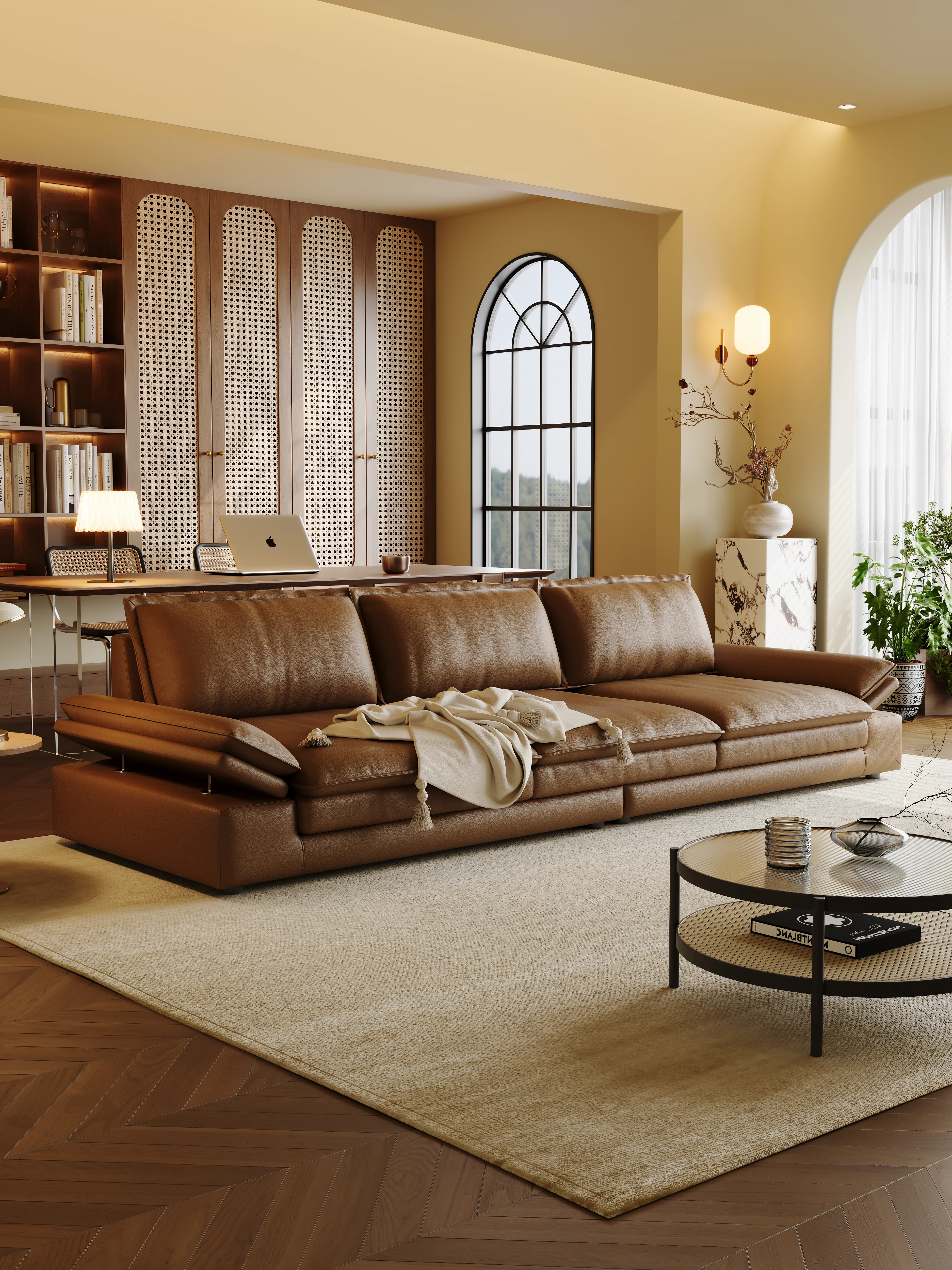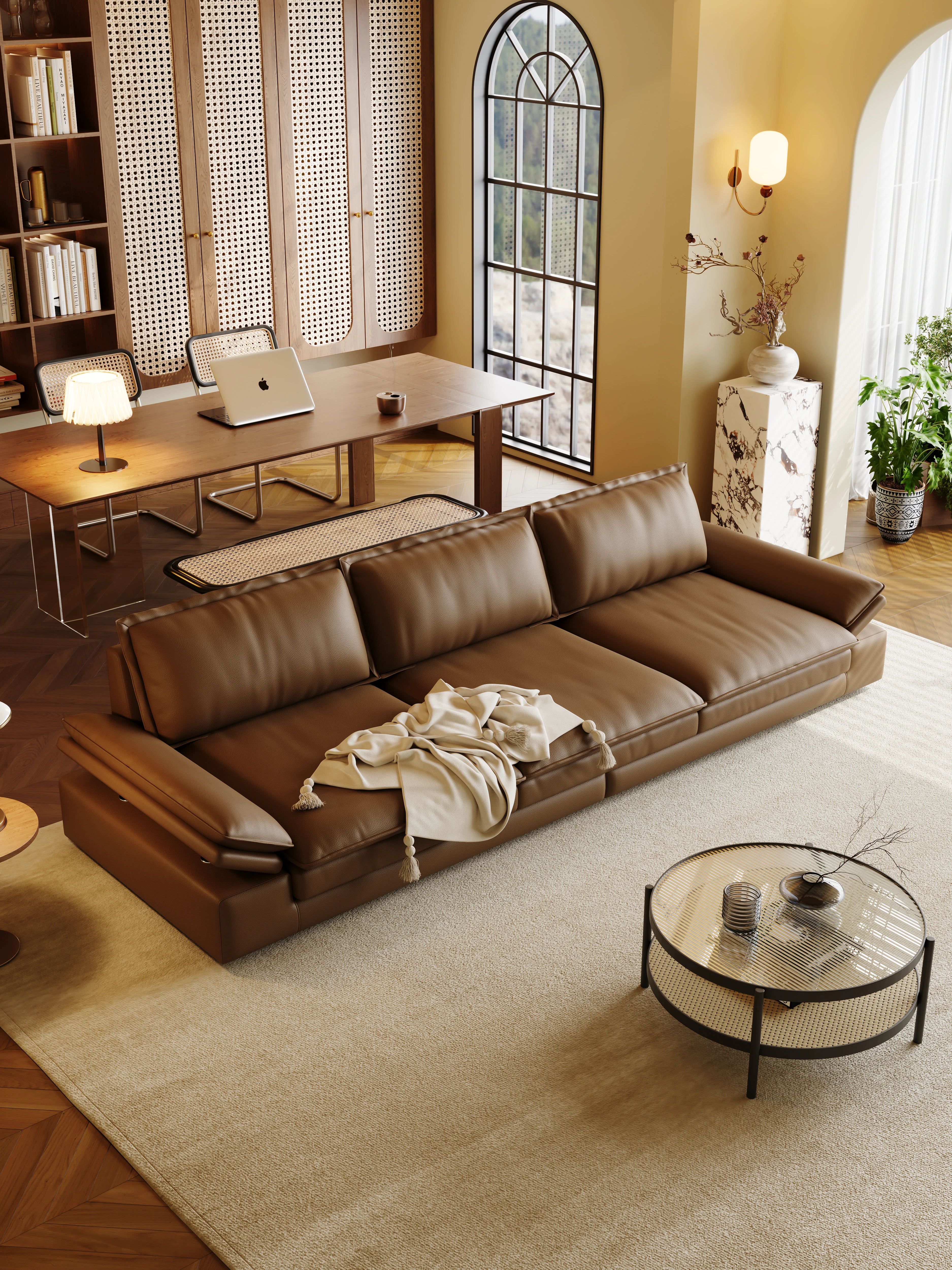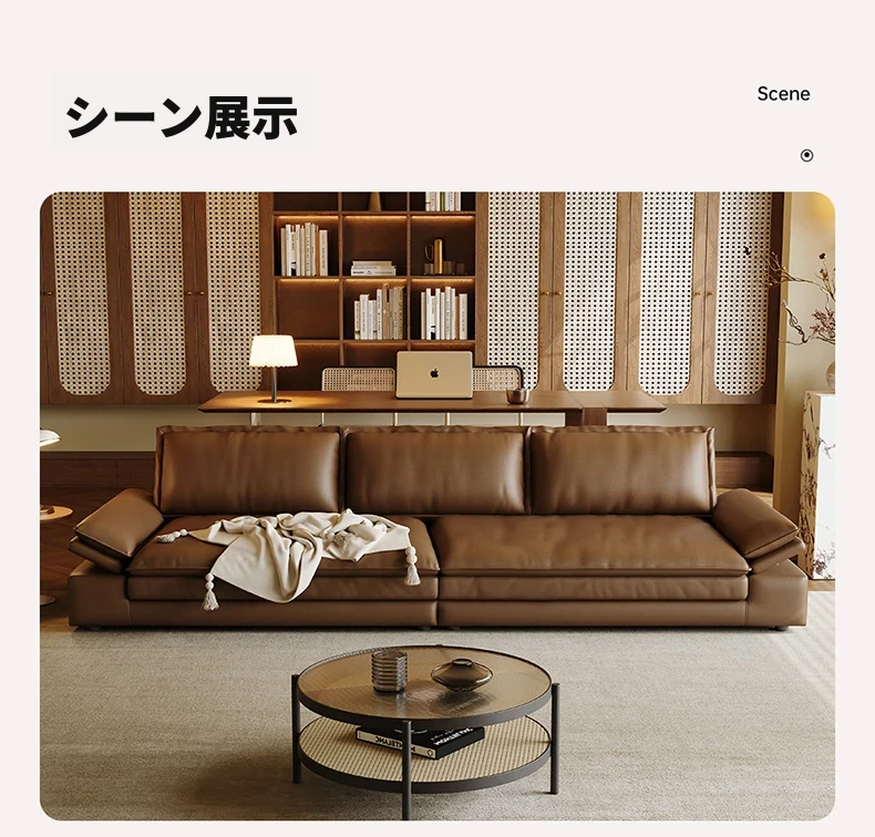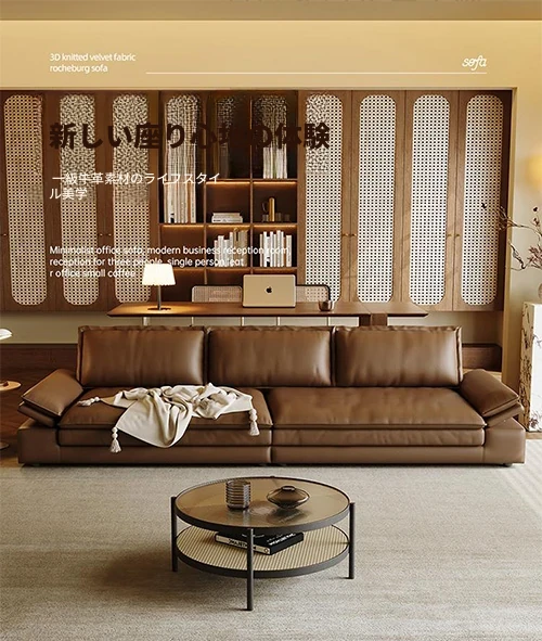 本革使用!2025年新作、モダンでシンプルなデザインのリビング用ミニマルラグジュアリーソファセット。コンパクトな空間にもぴったりな、牛革製の高品質ソファです!