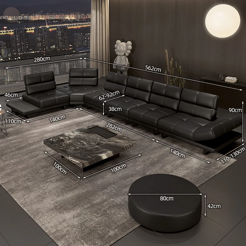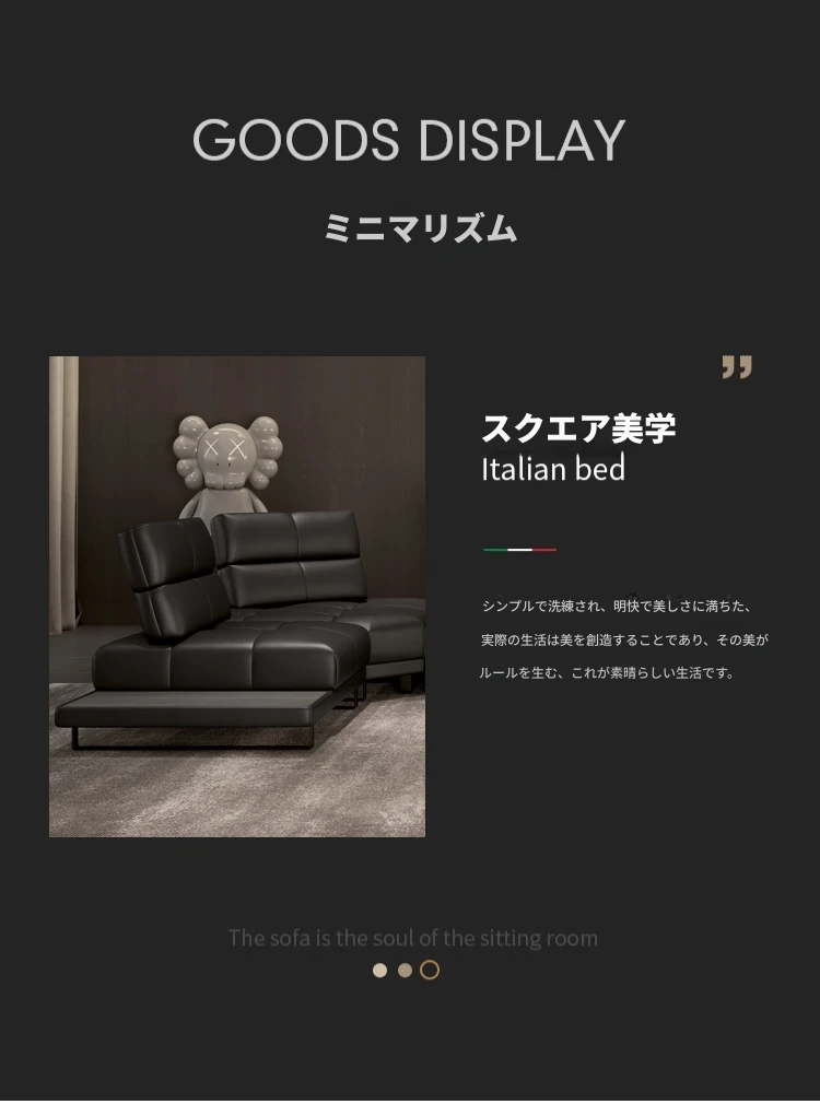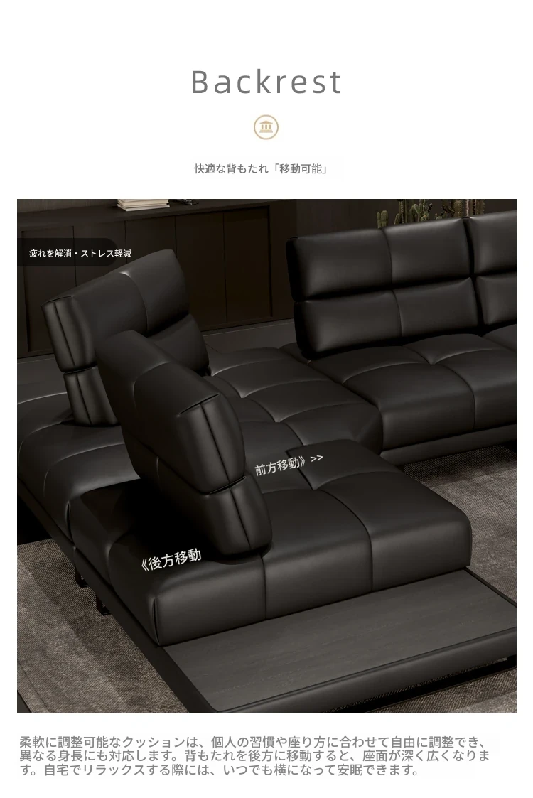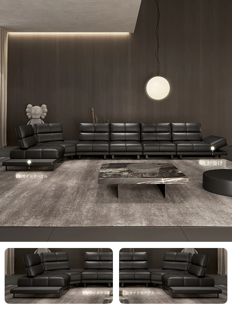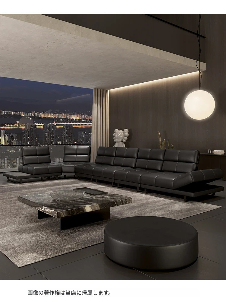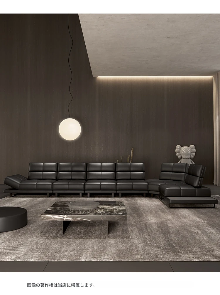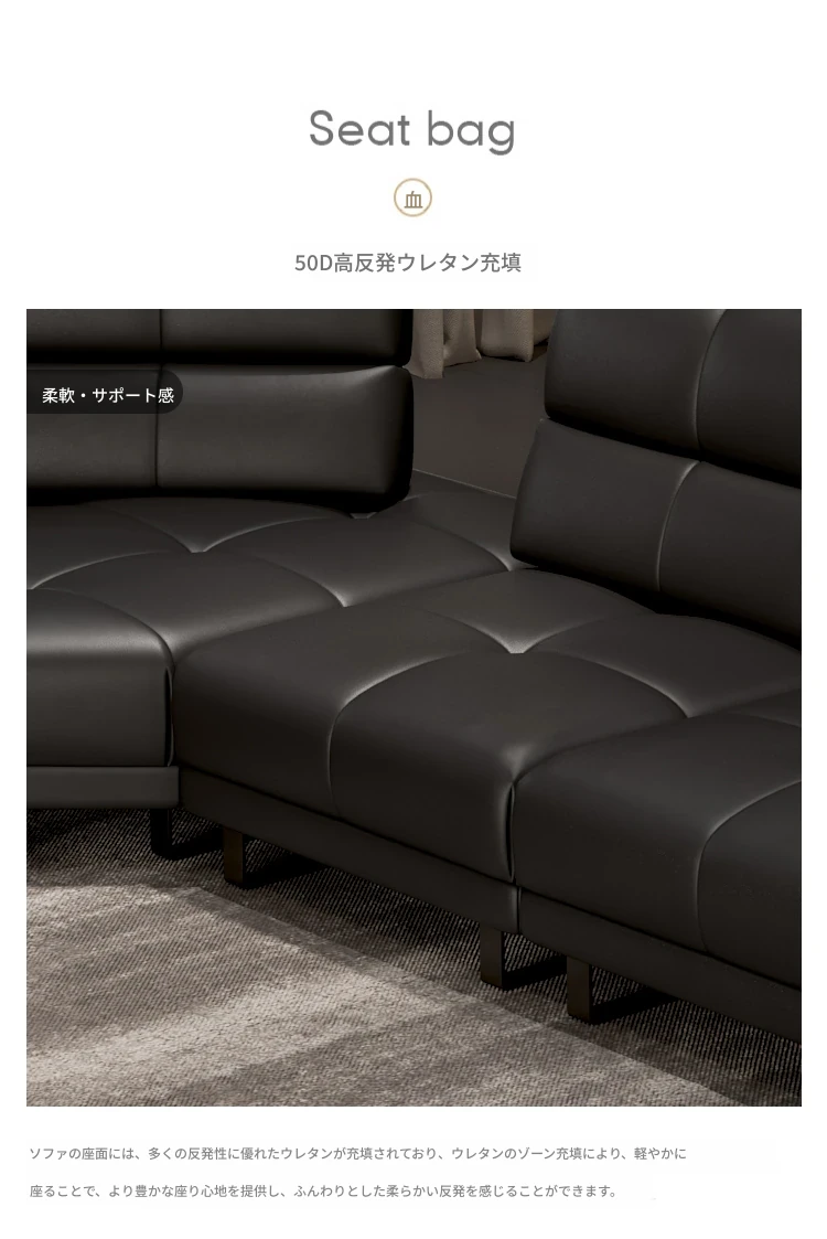ローマソファ イタリアンミニマリズム 全レザーソファ 半レザーソファ ブラックカラー リビングルームに最適な広々とした大ソファ - 高級感と快適さを兼ね備えた理想の空間を実現!