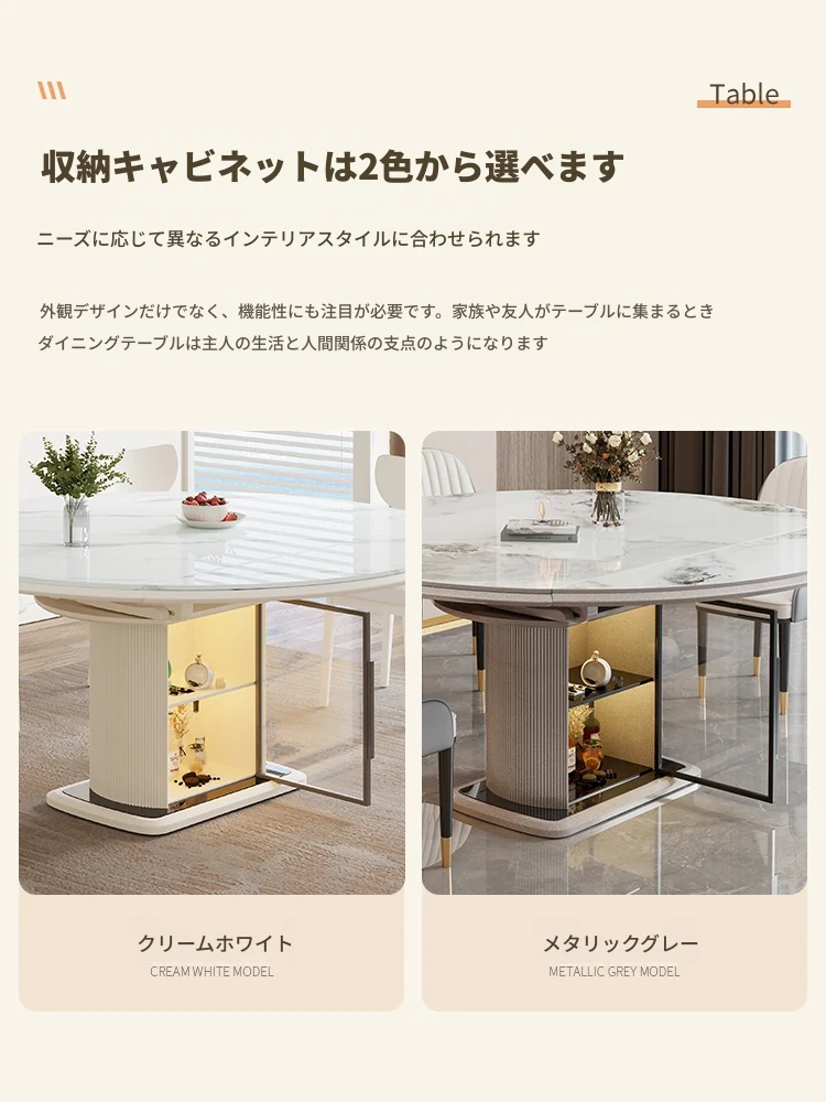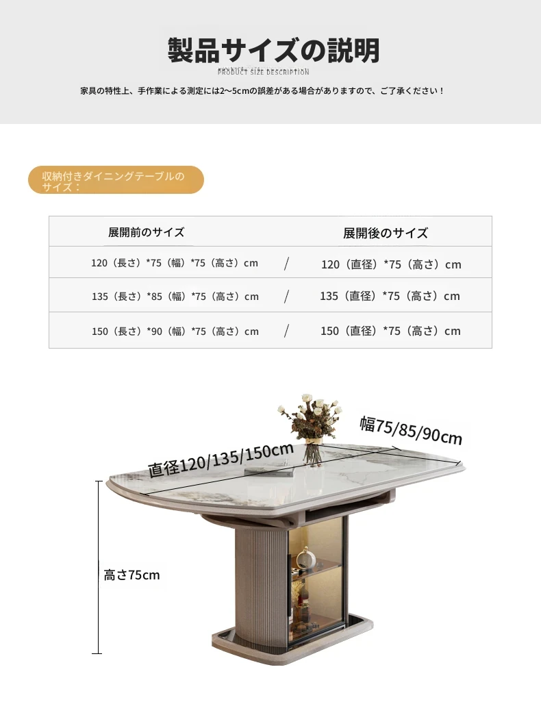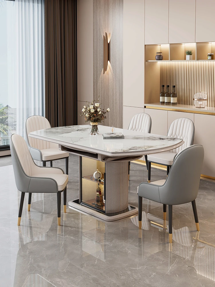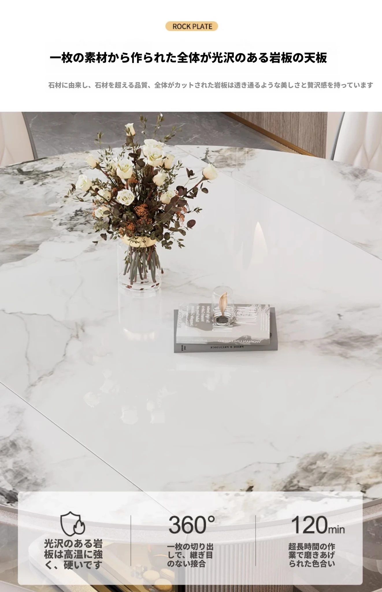 伸縮可能な岩板ダイニングテーブル|四角と丸型の2WAYデザイン|折りたたみ収納機能付き|モダンでシンプルな軽奢スタイル|小さなスペースにもぴったり!