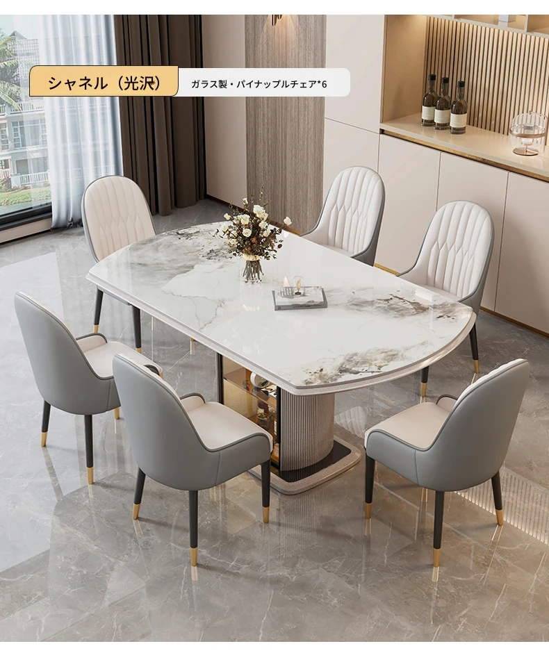 1.5メートル伸縮収納ダイニングテーブル+6脚 厚さ12MMの岩板