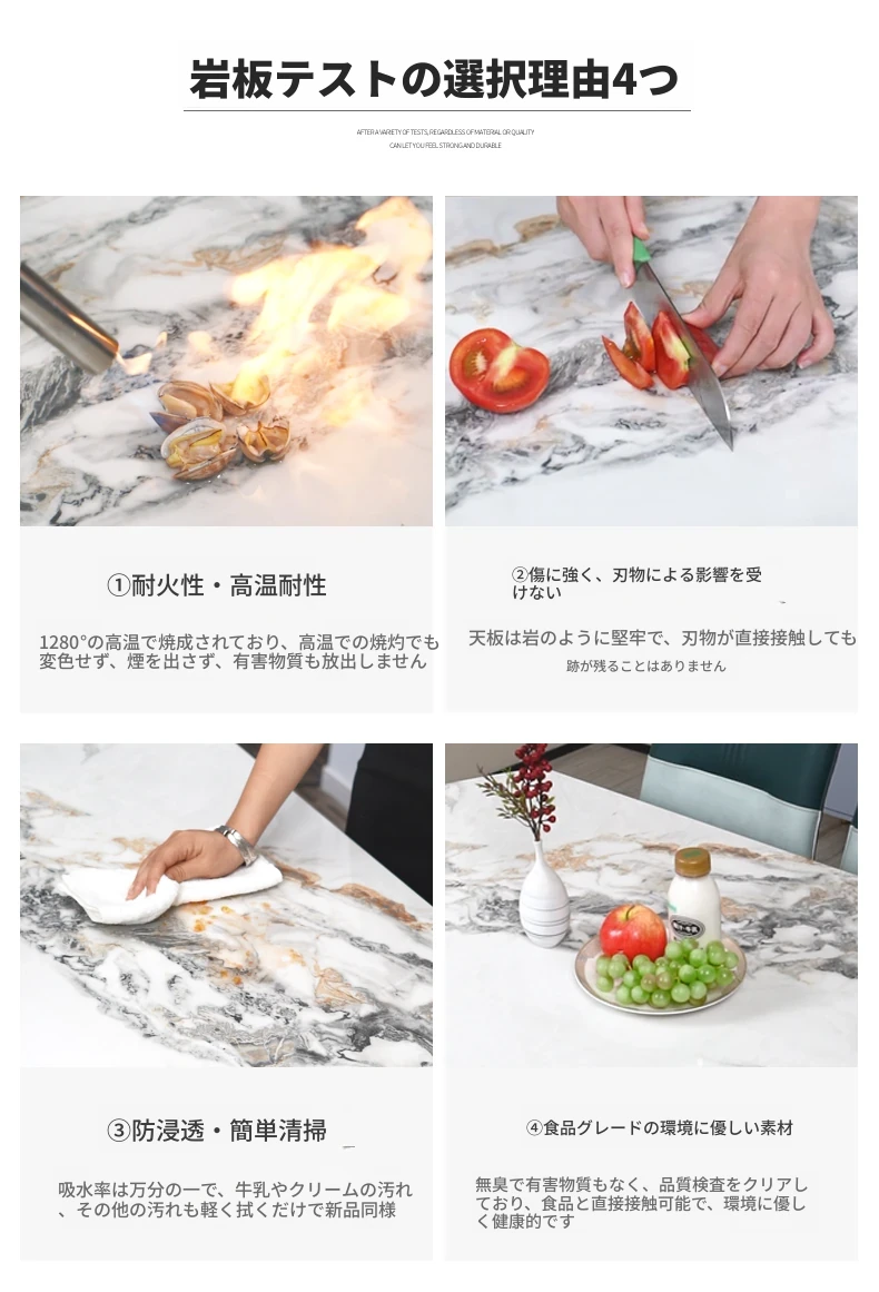 1.5メートル伸縮収納ダイニングテーブル+4脚【電磁調理器タイプ】 厚さ12MMの岩板