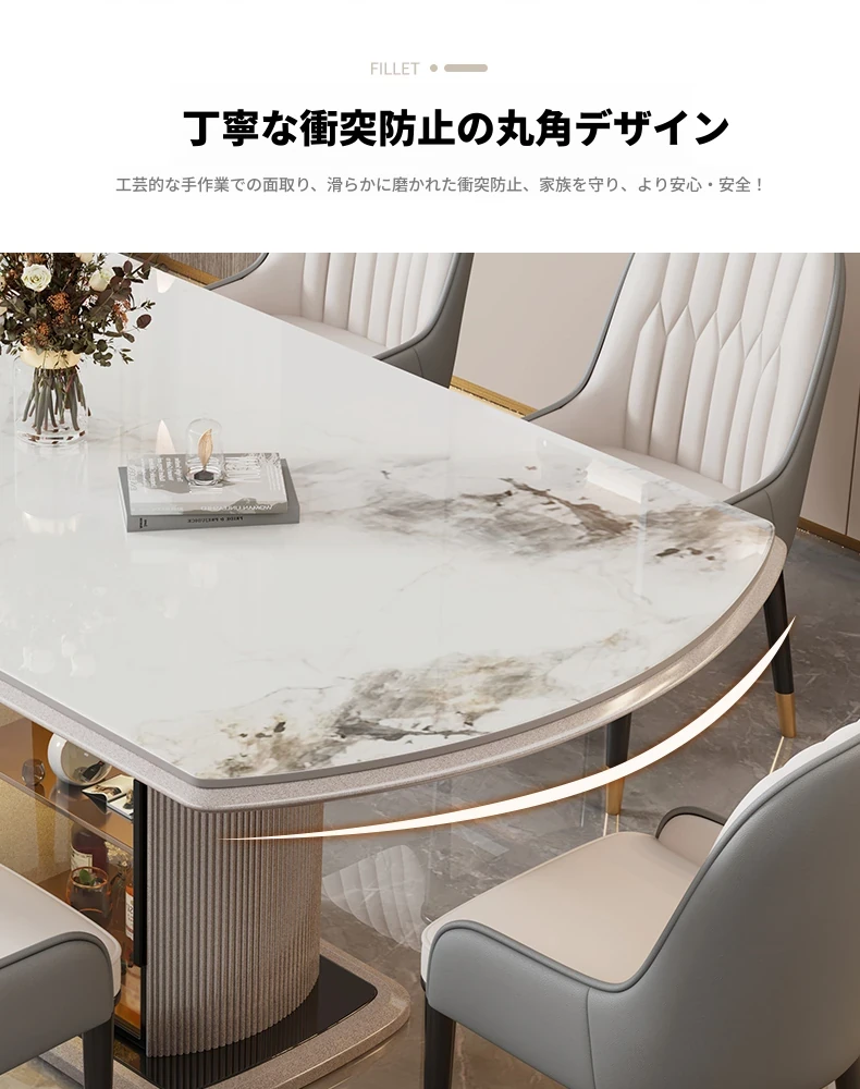 1.35メートル伸縮収納ダイニングテーブル+8脚【電磁調理器タイプ】 厚さ12MMの岩板