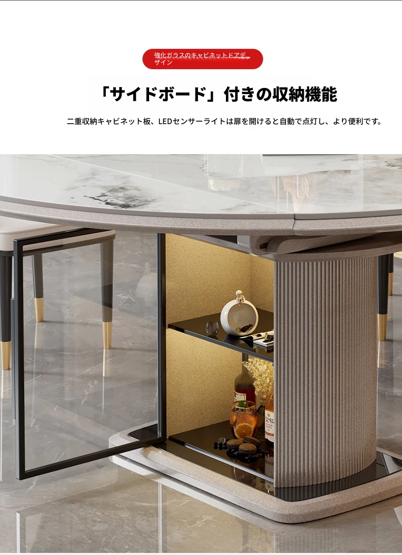 1.5メートル伸縮収納ダイニングテーブル+8脚【電磁調理器タイプ】 厚さ12MMの岩板