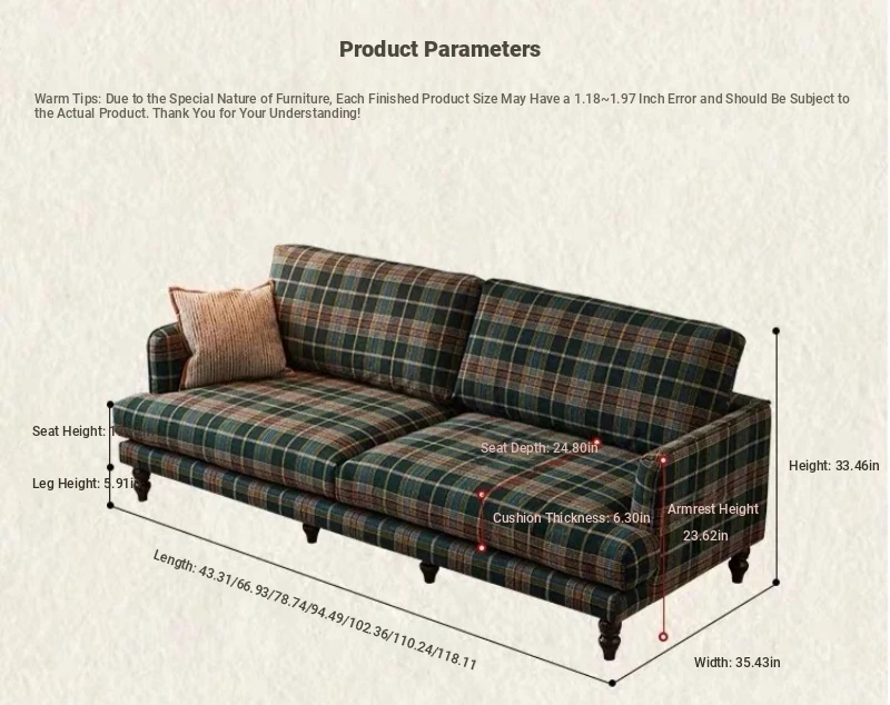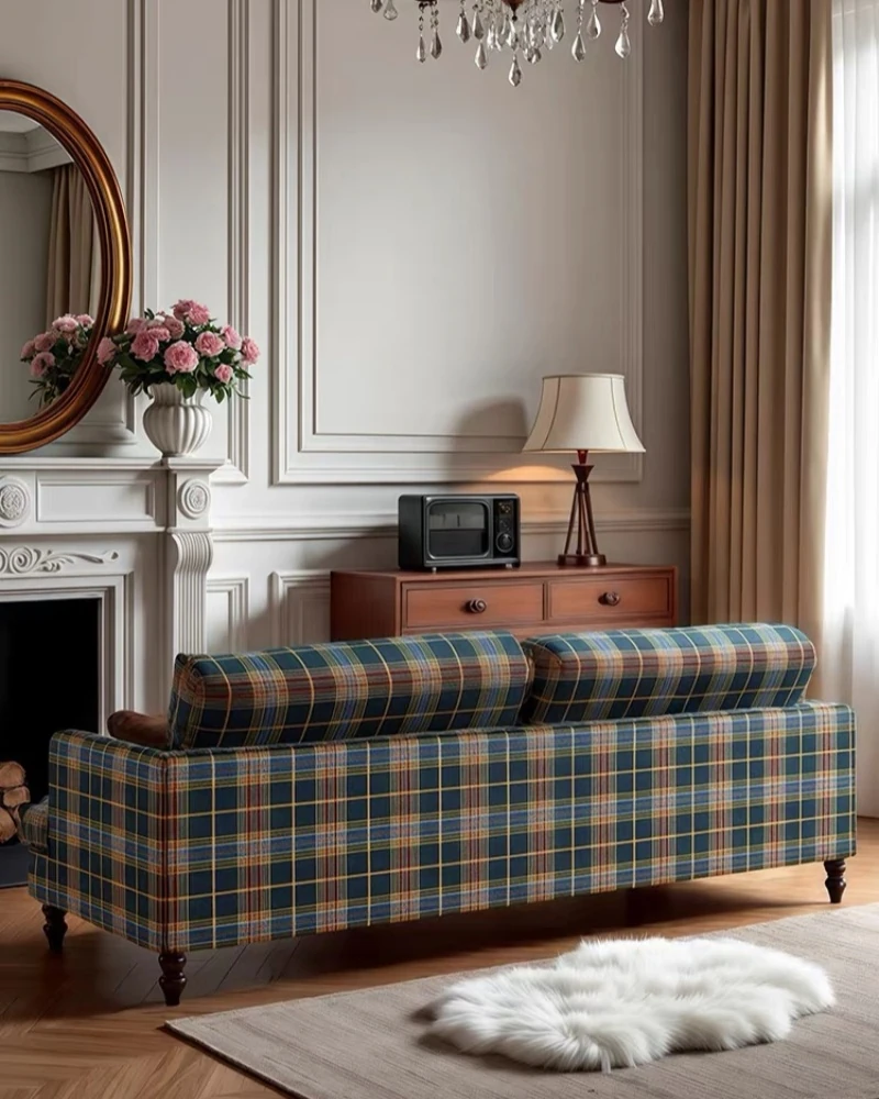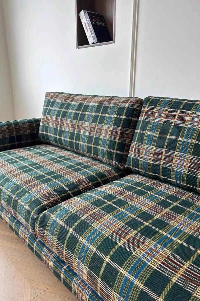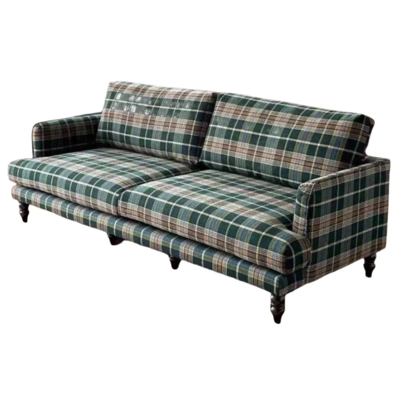 Vintage Green Plaid Sofa - American Style Fabric Couch for Living Room, Ideal for Small Apartments and Guesthouses, Cozy Two-Seater Design