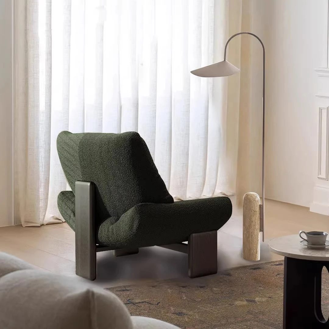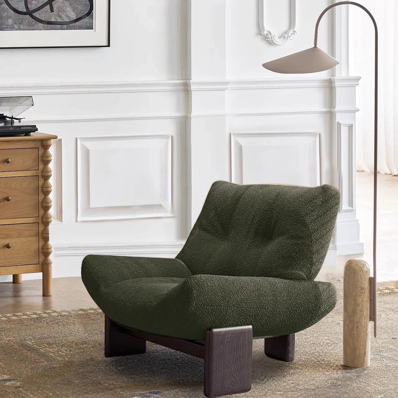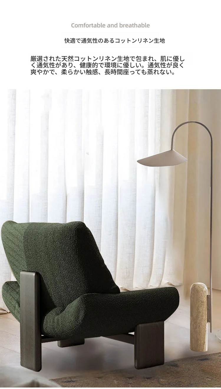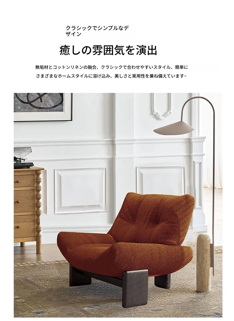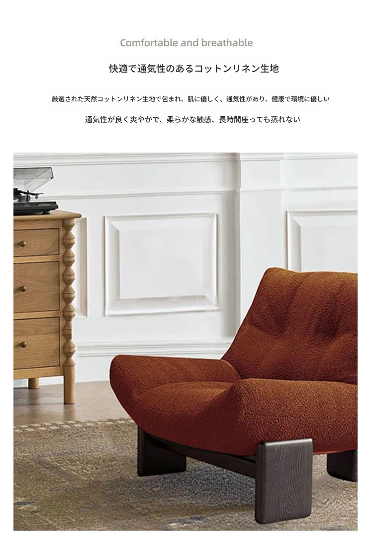中古風のレトロな一人掛けソファチェア - 侘寂の美を感じる天然木製リラクゼーションチェア。ホテルやリビングでの接客や商談に最適なスタイリッシュな逸品。